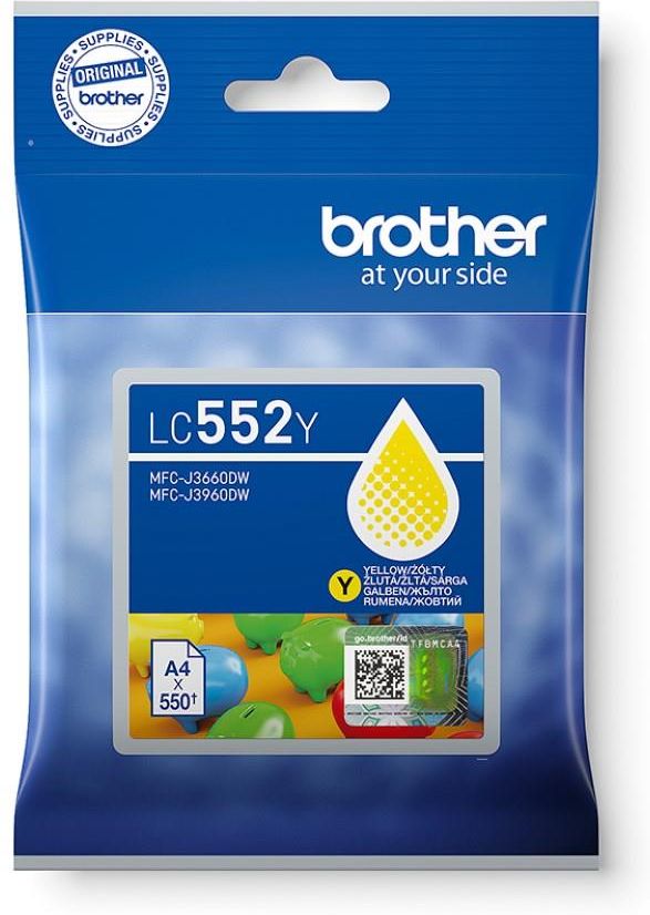 Brother LC-552Y Wysokiej jakości oryginalny żółty pigmentowy wkład atramentowy o wysokiej wydajności LC552XLY LC552XLY umożliwia druk do 550 stron zgodnie z ISO/IEC 24711 Wypełniony tuszem pigmentowym, zapewniającym wyraźne i szczegółowe wydruki Oryginalne wkłady atramentowe Brother są poddawane rygorystycznym testom, aby wydruk za każdym razem był na najwyższym poziomie, oszczędzając Twój czas i pieniądze Stosowanie oryginalnego wkładu atramentowego LC552Y pozwala na zachowanie gwarancji Drukuj więcej stron z wkładem atramentowym o wysokiej wydajności LC552XLY Opis produktu  Brother LC552Y Wysokiej jakości materiały eksploatacyjne są niezbędne do uzyskania doskonałych rezultatów druku. Standardowy żółty wkład Brother LC552Y z atramentem pigmentowym premium został opracowany z myślą o żywych kolorach i ostrym tekście. Niezależnie od tego, czy drukujesz prezentacje, czy dokumenty, poprawia on ogólną jakość druku.   Firma Brother dba o środowisko przez cały cykl życia wkładu atramentowego, pomagając zmniejszyć ilość odpadów trafiających na wysypiska. Nasz sprzęt i wkłady atramentowe są projektowane z myślą o zrównoważonym rozwoju, minimalizując ich wpływ na środowisko. Kompatybilne z Brother MFC-J3660DW i MFC-J3960DW. Więcej informacji o produkcie Brother LC552Y Przy zamawianiu tuszu do drukarki atramentowej warto polegać na kartridżu LC552Y firmy Brother, w celu utrzymania jak najlepszego stanu urządzenia i zapewnienia najwyższej jakości druku. Wymiana tuszu na tańszy zamiennik może wydawać się atrakcyjną decyzją. Należy jednak pamiętać, że może on nie tylko negatywnie wpłynąć na jakość druku, ale doprowadzić również do długotrwałych uszkodzeń drukarki. Oryginalny tusz LC552Y w kolorze żółtym zapewnia poprawne funkcjonowanie urządzenia a w długiej perspektywie gwarantuje lepszy stosunek jakości do ceny. LC552Y to świetne rozwiązanie do domu czy małego biura szukającego oszczędności przy zapewnieniu wysokiej jakości wydruków.