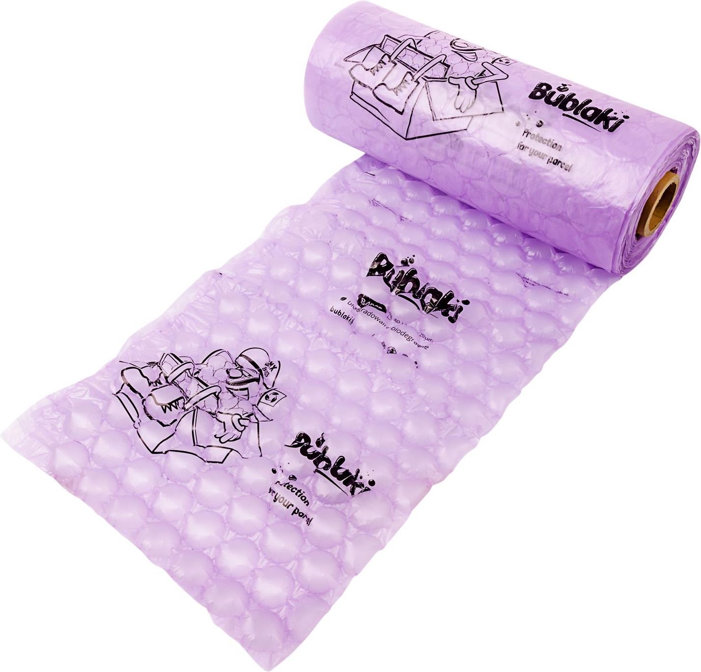 Bublaki 40 x 33 cm to biodegradowalne (GMX) wypełniacze do paczek, które gwarantują niezawodną ochronę produktów Towary przed wysyłką należy odpowiednio zabezpieczyć tak, aby podczas transportu nie uległy nawet najmniejszym uszkodzeniom. Dobrze przygotowana paczka w oczach klienta świadczy o naszym profesjonalnym podejściu. Maty powietrzne Bublaki to świetny, funkcjonalny system wypełnień, zapewniający ochronę zawartościom przesyłek nawet w trudnych warunkach. Niezawodna ochrona transportowanych przedmiotów Maty powietrzne Bublaki B4033GMX zabezpieczają towary poprzez ich owinięcie oraz dodatkowo wypełniają puste przestrzenie pozostające w paczce, co sprawia, że zawartość nie przemieszcza się podczas transportu. Dzięki swojej wytrzymałości i prostej konstrukcji gwarantują niezawodną ochronę produktów zarówno tych lekkich, jak i średnio ciężkich. Można nimi wypełnić różnorodne towary - począwszy od leków, kosmetyków, przez produkty podatne na uszkodzenia, np. szkło, aż po elektronikę. Zabezpieczają niezależnie od temperatury oraz poziomu wilgotności. Odporność mat na obciążenie przekłada się na doskonałą amortyzację - redukują do minimum wstrząsy, uderzenia, a nawet hałasy. Podział na mniejsze komory powietrzne typu "Bubble" (bąble) sprawia, że mata jest jeszcze bardziej elastyczna, co pozwala na dokładne owinięcie i dopasowanie się do przedmiotu, który chronią. Ogranicz koszty transportu i magazynowania Biodegradowalny powietrzny wypełniacz paczek Bublaki 40x33 cm przed napompowaniem zajmuje bardzo mało miejsca. Pozbawiony powietrza jest płaski, niczym papier, kompaktowy oraz nawinięty na rolkę, co pozwala ograniczyć koszty magazynowania. Wypełniacze powietrzne są produkowane bezpośrednio na stanowisku pakowania w ilości, jaka obecnie jest potrzebna. Maszyna do produkcji Bublaków jest kompaktowa i może być zainstalowana bezpośrednio przy strefie pakowacza. Wypełniacze powietrzne nie wpływają na wagę przesyłki, gdyż składają się z około 95% z powietrza i tylko 5% z folii. Jest to najlżejszy wypełniacz do kartonów dostępny na rynku. Więcej zadowolonych klientów z Bublakami Maty powietrzne są idealnym środkiem dla każdego przedsiębiorcy, który ceni wygodę, oszczędność, jakość oraz wizerunek. Bublaki to wypełniacz paczek do owijania narażonych przedmiotów w trakcie transportu, cieszący się uznaniem nawet najbardziej wymagających konsumentów, zwłaszcza tych, którzy stawiają na rozwiązania ekologiczne. Stosując wypełniacze powietrzne, skutecznie zredukujesz ilość reklamacji, zwiększając tym sposobem satysfakcję wśród klientów. Odpowiednio przygotowane i zabezpieczone paczki z wykorzystaniem wytrzymałych wypełniaczy świadczą o naszym profesjonalizmie, co pozytywnie wpłynie na wizerunek firmy. Ekologiczne wypełniacze do paczek, a do tego biodegradowalne Nie istnieje bardziej ekologiczne rozwiązanie niż zastosowanie wypełniaczy z powietrzem. Bublaki B4033GMX mogą zostać ponownie użyte bądź poddane recyklingowi. Dzięki temu uznaje się je za wariant nie tylko ekonomiczny, ale również ekologiczny. Raport z testu informuje, że proces degradacji wynosi 180 dni w przypadku, gdy folia ma kontakt z glebą lub innym materiałem biodegradowalnym, np. warunkami występującymi na wysypiskach, kompostownikach. Bublaki GMX mogą być zakopane - rozłożą się na wodę, dwutlenek węgla i tlenek wapnia, użyźniając glebę i skutecznie chroniąc rośliny przed bakteriami. Poduszki te ulegają biodegradacji zarówno w warunkach tlenowych, jak i beztlenowych. Szybkość i łatwość pakowania Produkt po wypełnieniu powietrzem, od razu jest gotowy do użycia. Do napompowania ich wykorzystuje się jedną z dedykowanych maszyn do produkcji wypełniaczy powietrznych. Są łatwe w użyciu - między każdą z mat znajduje się perforacja, która pozwala na łatwe odrywanie ich między sobą. W ten sposób można dobrać odpowiednią ilość do transportowanego przedmiotu i jego opakowania. Maty powietrzne Bublaki B4033GMX - Najważniejsze cechy Wszystko, co musisz wiedzieć o Bublakach Stabilność towaru podczas transportu Wypełniają puste przestrzenie wewnątrz paczki, aby zapakowany produkt nie przemieszczał się w trakcie transportu Prawdziwy bohater w Twojej paczce Zapewniają ochronę i amortyzację owiniętych przedmiotów w trakcie wysyłki Biodegradowalne & przyjazne dla środowiska Bublaki mogą zostać wielokrotnie wykorzystane, a także podlegają recyklingowi. Są biodegradowalne. Oszczędność miejsca i kosztów przesyłki Minimalizują koszty transportu i magazynowania. Bublaki przed napompowaniem nie zajmują wiele miejsca, a ich znikoma waga wpływa na obniżenie kosztów wysyłki Wypełnij i zabezpiecz mnóstwo paczek Rolka o długości 300 m pozwoli na zabezpieczenie wielu towarów Wytrzymałe i solidne Grubość folii wynosi 20 mikronów Materiał Maty powietrzne Bublaki zostały wykonane z biodegradowalnych materiałów Rozmiar Rozmiar pojedynczej maty wynosi 40x33 cm