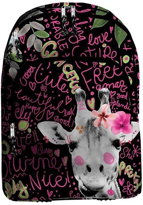 - plecak szkolny - wzór: BeCool Giraffe - posiada: dwie komory, kieszeń zewnętrzną zamykaną na suwak - miękkie i regulowane szelki - wygodny uchwyt do trzymania w ręku - materiał: poliester - wymiary: 45 x 30 x 13 cm