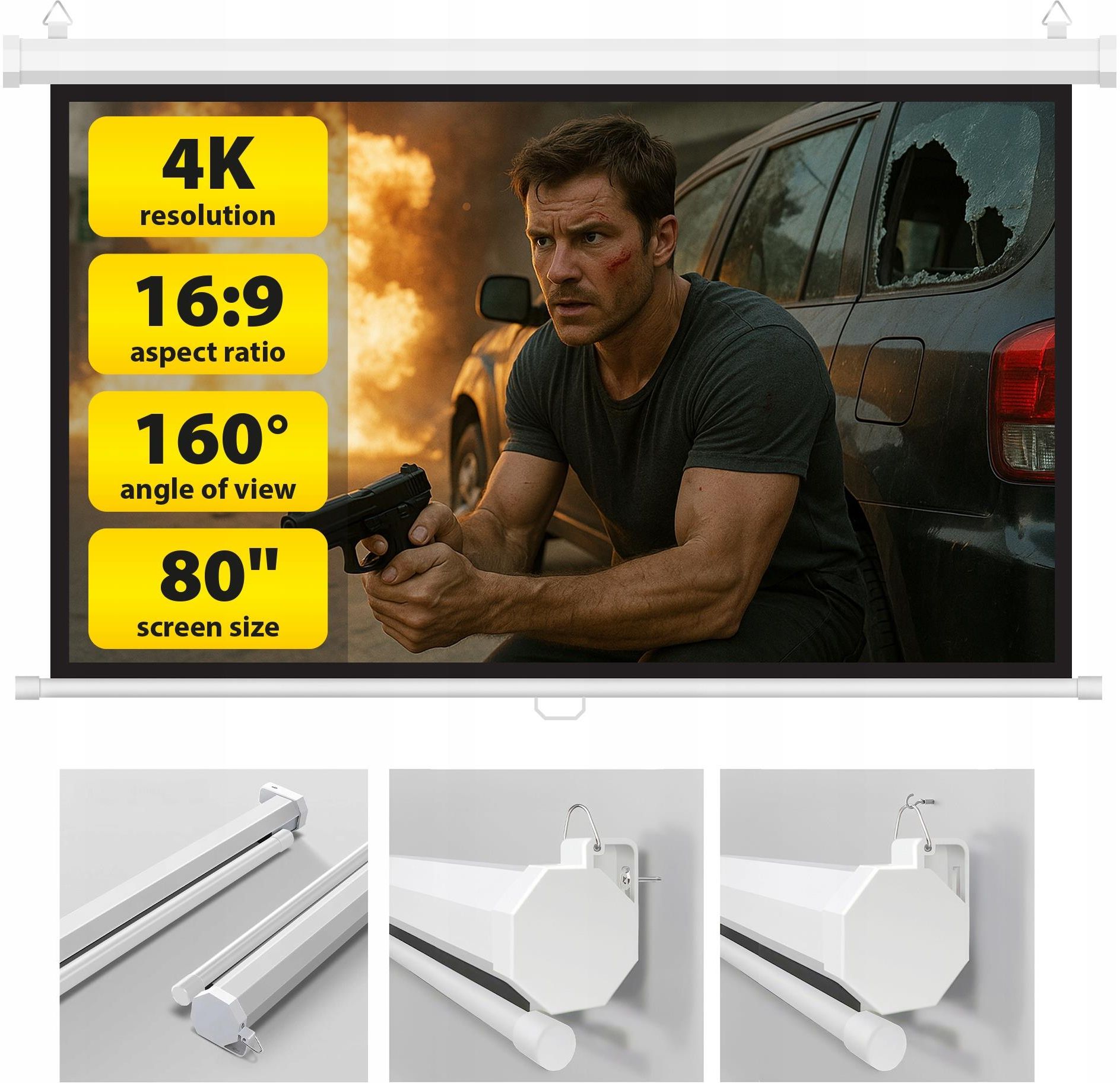 Camrock Ekran Projekcyjny 80 Cali Do Projektora Rzutnika Biały 16:9 (CR4772) Poznań