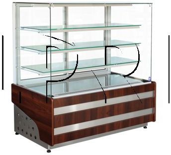 Lada witryna chłodnicza cukiernicza Cebea WCH-1/CP Estera 950/830. Gwarancja 12 m-c. Istnieje możliwość przedłużenia gwarancji do 24miesięcy. Zastosowanie: do przechowywania produktów cukierniczych wymagających obniżonej temperatury takich jak: torty, ciasta,ciasteczka. Opis: szyba frontowa prosta chłodzenie: obieg wymuszony termostat z automatycznym odszranianiem i cyfrowym wyświetlaczem korpus izolowany ekologiczną pianka poliuretanowa obudowa zewnętrzna: płyta wiórowa laminowana automatyczne odparowanie skroplin oświetlenie wszystkich półek: świetlówka ,,cukiernicza“ drzwi przesuwne z szybą zespoloną agregat chłodniczy wewnętrzny kolory profili i obudowy z płyty laminowanej wg załączonego wzornika Wymiary zewnętrzne: Długość: 950 mm Szerokość: 830 mm Wysokość: 1450 - 1470 mm masa 185 kg Dane techniczne: Chłodzenie obieg wymuszony Zakres temperatur: od +5°C do +15°C przy temperaturze otoczenia 25°C i wilgotności względnej 60% Pojemność użytkowa 320 l Powierzchnia ekspozycyjna półek 1,68 m² Czynnik chłodniczy R507 Napięcie znamionowe/moc znamionowa: 230 V Moc znamionowa 800 W Zużycie energii elektrycznej wciągu 24 godzin: 11,5 kWh