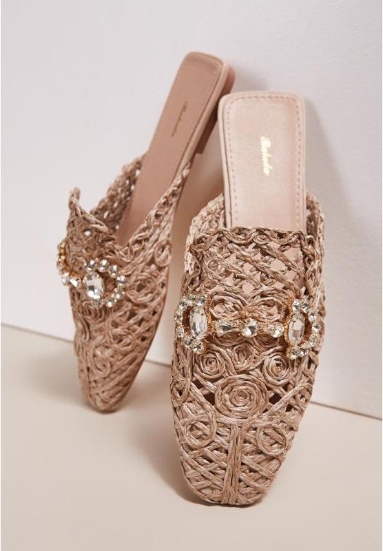 Klapki Alcomene na płaskim obcasie. Klapki mule z plecioną cholewką. Kwadratowy nosek. Wsuwane, odkryta pięta. Cholewka udekorowana oryginalną kompozycją z plecionki oraz dekoracyjnym łańcuszkiem z cyrkoniami. Cholewka z materiału, wkładka z ekoskóry. Letnie mule, które dopasujesz zarówno do jeansowych szortów, jak i satynowej sukienki. Kolor: Beżowy Tęgość stopy: Wąski Rodzaj obcasa: Płaski Wkładka/wyściółka: Ekoskóra Materiał: Materiał tekstylny Nosek buta: Kwadratowy Zapięcie: Wsuwany/otwarty Sezon: Letni