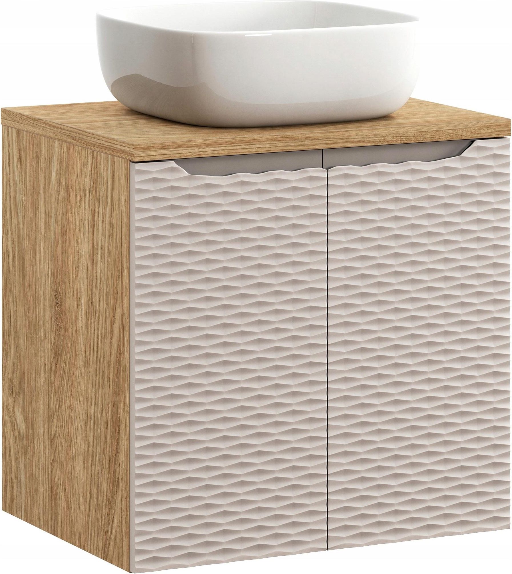 Comad Szafka Łazienkowa 60Cm Z Umywalką Nablatową 41Cm Dąb + Beż Frez Poznań