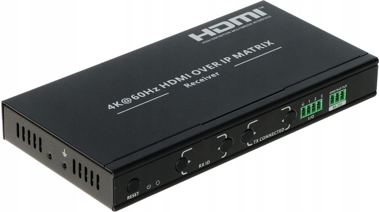Urządzenie umożliwia przesył sygnału wysokiej rozdzielczości do odbiornika telewizyjnego wyposażonego w złącze HDMI poprzez skrętkę komputerową kat. 5, 5e, 6. Urządzenie może pracować w trybie połączenia "jeden-do-jeden", "wiele-do-wielu" oraz przez switch również w połączeniach kaskadowych. Urządzenie dodatkowo wyposażone jest w wejście i wyjście sygnału sterującego IR (nadajnik i odbiornik IR w zestawie), wejścia/wyjścia sterujące (I/O), port RS-232 oraz port mini-USB przeznaczony do aktualizacji oprogramowania. Odbiornik obsługuje zasilanie PoE. HDMI-EX122E-RX doskonale nadaje się do podłączenia tunera satelitarnego, odtwarzacza DVD, komputera czy konsoli do odbiornika, który jest znacznie oddalony od wymienionych urządzeń. Do telewizora należy doprowadzić tylko jedną skrętkę komputerową co ułatwia instalację urządzenia oraz poprawia estetykę instalacji. Uwaga! Urządzenie pracuje od strony monitora. SPECYFIKACJA Rodzaj urządzenia: Odbiornik Obsługiwane rozdzielczości HDMI: 1280 x 720 -720p@ 50/60 Hz, 1920 x 1080 -1080p@ 50/60 Hz, 1920 x 1200 @ 60 Hz, 2560 x 1440 @ 60 Hz, 3840 x 2160 -4K UHD@ 24/30/50/60 Hz, 4096 x 2160 @ 24/30 Hz Maksymalny zasięg transmisji: 80 m UTP kat. 5, 100 m UTP kat. 5e, 120 m UTP kat. 6 Protokoły: ipcolor STREAM™ Max. liczba pracujących jednocześnie odbiorników: 256 Obsługiwany standard HDMI: 2.0 HDCP: 1.4 / 2.2 Zasilanie: 5 VDC/ 2 A (zasilacz w komplecie), PoE Pobór mocy: ≤ 3.5 W Temperatura pracy: -20 °C ... 60 °C Dopuszczalna względna wilgotność otoczenia: 0 % ... 90 % (bez kondensacji) Waga: 0.514 kg Wymiary: 191 x 96 x 25 mm Wybrane cechy Przewód HDMI : max. 5 m Szybka transmisja danych : max. 18 Gbps Opóźnienie transmisji : 70 ... 130 ms -1080p@ 60 Hz, 130 ... 200 ms -4K@ 60 Hz Obsługa LPCM 2.0 Obsługa trybu Video wall : max. 5 x 5, Odbiornik IR / Nadajnik IR Porty I/O, RS-232 (sterowanie) Port mini USB - Możliwość aktualizacji oprogramowania sprzętowego Przycisk RESET Zdalne zarządzanie - Darmowa aplikacja iMMS - ipcolor Multimedia Management System na Android Zabezpieczenie przeciwprzepięciowe Ochrona przed wyładowaniami elektrostatycznymi - ESD - IEC 61000-4-2, ±4kV contact, ±8kV air Ochrona przed wyładowaniami atmosferycznymi Pełna nazwa produktu ODBIORNIK EXTENDERA HDMI-EX122E-RX