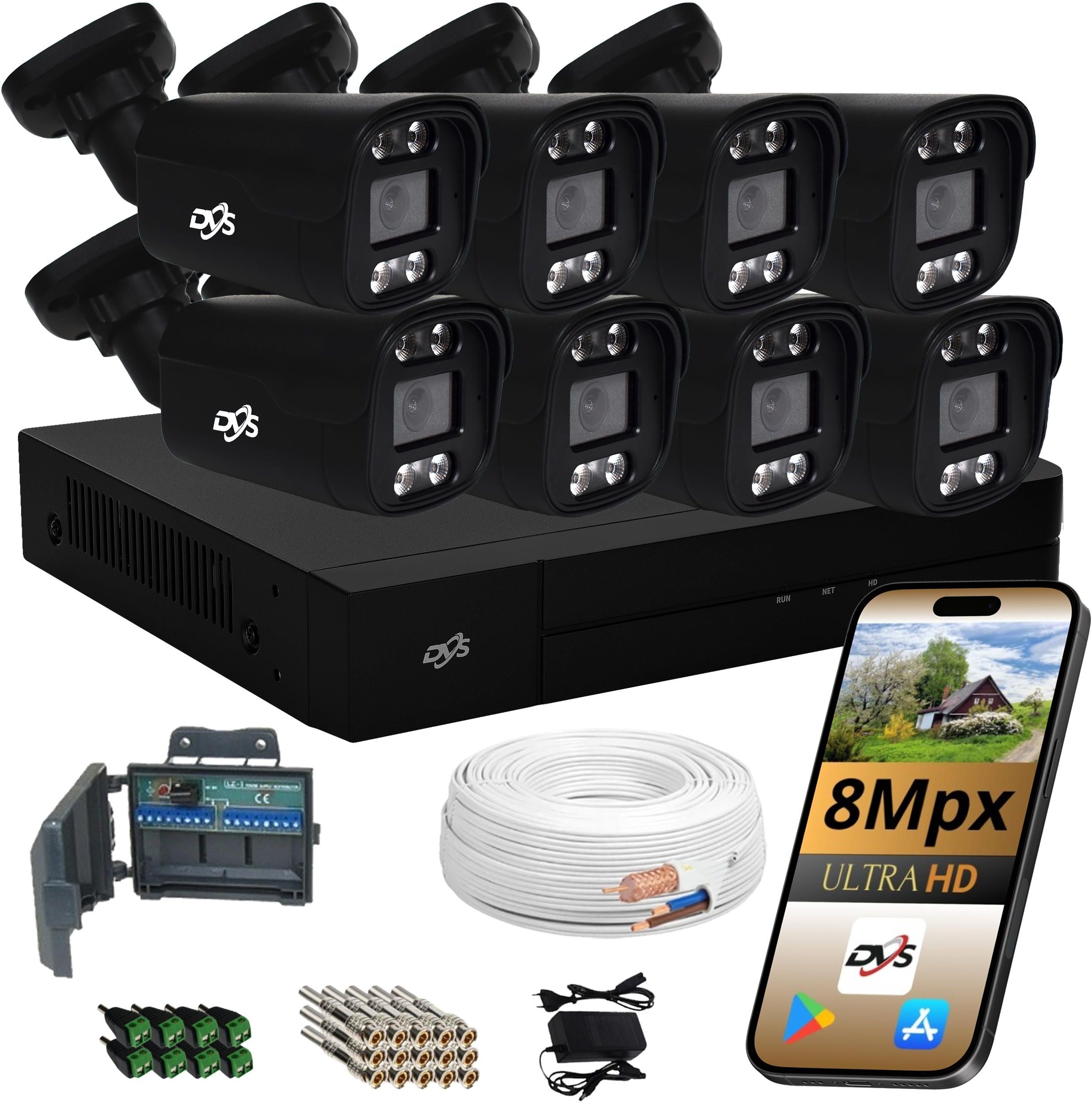 • CZARNA TUBA ANALOG ZESTAW 8 ZEWNĘTRZNE KAMERY 8MPX