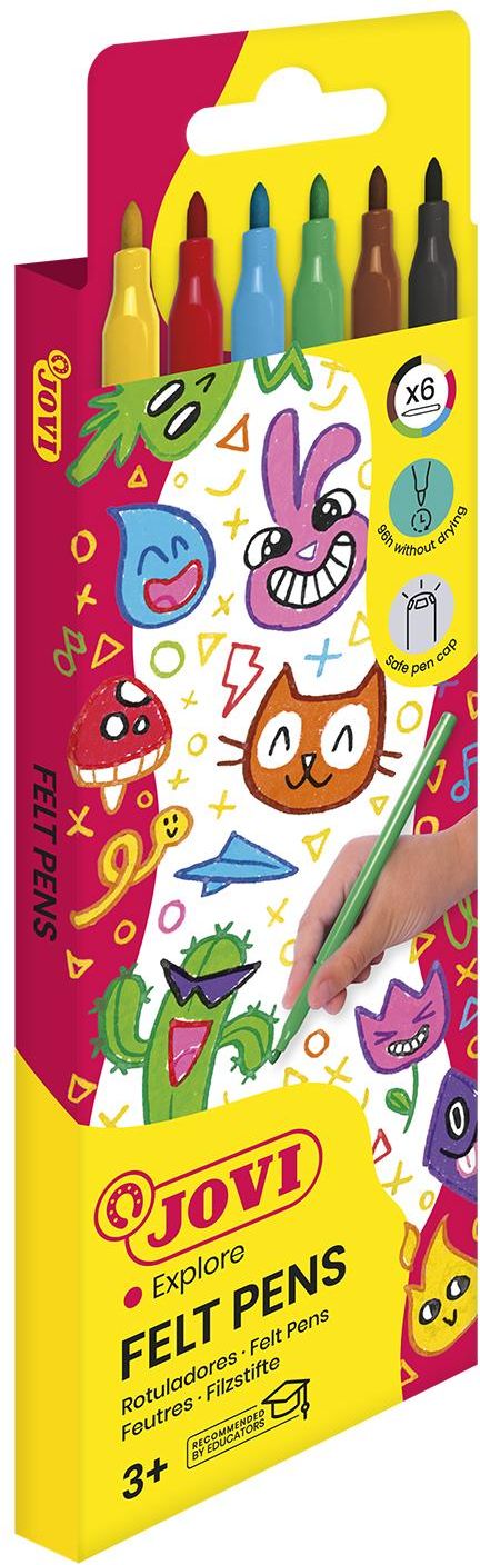 Opakowanie zawiera 6 wysokiej jakości flamastrów, w różnych intensywnych kolorach. Tusz flamastrów jest wykonany na bazie barwników spożywczych na bazie wody, bez dodatku alkoholu. Końcówki flamastrów są bardzo mocne i odporne na naciski. Odporne na szybkie wysychanie, wytrzymują bez skuwki do 96h. Flamastry z łatwością ślizgają się po papierze. Ich wkład jest trwały, a nakładka została wyposażona w system wentylacji, aby zapewnić bezpieczeństwo użytkowników. Sprawdzają się dobrze przy wszystkich powierzchniach, z wyjątkiem bardzo porowatych i śliskich powierzchni. Łatwo zmywają się ze skóry i ubrań, wystarczy użyć wody z mydłem
