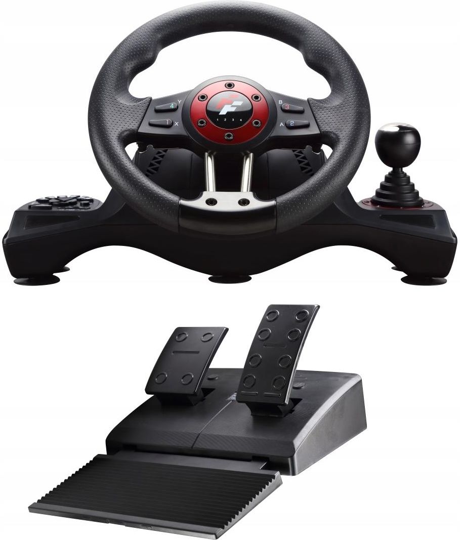Kierownica do Gier z Pedałami – Kompatybilna z PC/PS3/PS4/Xbox One/Xbox Series X/S/Nintendo Switch Chcesz przenieść swoje umiejętności w grach wyścigowych na wyższy poziom? Ta wyjątkowa kierownica do gier z pedałami to idealny wybór dla każdego fana motoryzacji i wyścigów! Specyfikacje Kompatybilność z wieloma platformami: PC/PS3/PS4/Xbox One/Xbox Series X/S/Nintendo Switch Pedał wyposażony w sprężynę jako system opóźniający przyspieszenie, co daje bardziej autentyczne doświadczenie jazdy Czułość kierownicy można regulować w 3 ustawieniach, aby dopasować ją do różnych graczy Wbudowany silnik odchylenia umożliwia realistyczną wibrację podczas jazdy Cztery diody LED pokazujące stan pracy Przycisk HOME odpowiada funkcji przycisku HOME na PS3/PS4/Xbox One/Xbox Series X/S/Switch 2 osie, klawisz strzałek i 12 odizolowanych przycisków akcji 8 przycisków do samodzielnej edycji: lewe skrzydło, prawe skrzydło, przyspieszenie, hamulec (L3/11/SL), (R3/12/SR), dźwignia zmiany biegów (-/+) 6 dużych, trwałych i łatwo dostępnych przyssawek Obrót kierownicy o 270° Wymaga oryginalnego kontrolera do prowadzenia, gdy jest używana na PS4 lub Xbox One/Xbox Series X/S Poczuj się jak profesjonalny kierowca wyścigowy – dzięki realistycznym funkcjom i szerokiej kompatybilności z wieloma platformami, ta kierownica przeniesie Twoje doznania z gier wyścigowych na zupełnie nowy poziom! Idealna zarówno dla początkujących, jak i doświadczonych graczy. Autentyczne wrażenia z jazdy – pedał z wbudowaną sprężyną realistycznie opóźnia przyspieszenie, dając uczucie jak za kierownicą prawdziwego samochodu. Wysoka jakość i trwałość – solidna konstrukcja, intuicyjne sterowanie i wyjątkowa stabilność sprawiają, że to urządzenie będzie Ci służyć przez długie godziny gry. Mocne i stabilne przyssawki – 6 dużych przyssawek gwarantuje stabilność nawet podczas najbardziej emocjonujących wyścigów! Wibracje dla większego realizmu – wbudowany silnik odchylenia zapewnia wibracje symulujące rzeczywiste odczucia podczas jazdy. Wszechstronna kompatybilność – nie musisz się martwić, na jakiej konsoli grasz – ta kierownica będzie działać prawie wszędzie! Uniwersalna kompatybilność – działa z platformami PC, PS3, PS4, Xbox One, Xbox Series X/S oraz Nintendo Switch, co czyni ją idealnym rozwiązaniem, bez względu na to, na jakiej konsoli grasz! Szeroki kąt obrotu – kierownica obraca się o 270°, co pozwala na precyzyjne i realistyczne manewrowanie. Wielofunkcyjne przyciski – 2 osie, strzałki oraz 12 niezależnych przycisków akcji, a także 8 programowalnych przycisków, takich jak przyspieszenie, hamulec czy zmiana biegów. Regulowana czułość kierownicy – dopasuj ustawienia kierownicy do swojego stylu jazdy dzięki trzem różnym poziomom czułości. Uniwersalna kompatybilność – działa z platformami PC, PS3, PS4, Xbox One, Xbox Series X/S oraz Nintendo Switch, co czyni ją idealnym rozwiązaniem, bez względu na to, na jakiej konsoli grasz! UWAGA W przypadku użytkowania na konsolach PS4, Xbox One lub Xbox Series X/S wymagany jest oryginalny kontroler do prowadzenia. Nie czekaj! Zdobądź przewagę na torze wyścigowym i zamów swoją kierownicę do gier już dziś!