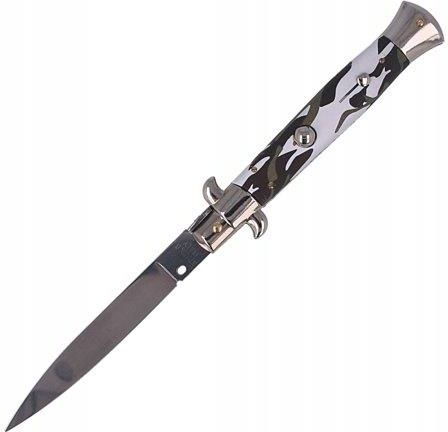 Tradycyjny włoski nóż sprężynowy z rękojeścią, z tworzywa w czarno-białym kamuflażu. Otwarcie klingi musi odbyć w ciągu kilku setnych sekundy (cecha noży Stiletto). Całkowicie ręcznie wykonane, zgodnie z zasadami włoskiego rzemiosła, noże z legendarnej manufaktury Frank Beltrame stały się sławne na …