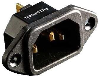 Gniazdo zasilające na obudowę INLET G- gold Gniazdo zasilające na obudowę. Wszystkie metalowe części wykonano z czystej miedzi pokrytej 24-karatowym złotem. Montaż na obudowie za pomocą śrub. Przewody mocowane poprzez lutowanie. Korpus gniazda wykonany jest z Nylonu. Obciążenie 10A/250V AC. Technologia Furutech Pure Transmission skupia się na każdym elemencie transferu mocy i sygnału, stosując zoptymalizowane rozwiązania inżynieryjne do znanych problemów, takich jak odporność na kontakt, zakłócenia elektromagnetyczne i RFI, uziemienie i wykorzystanie najlepszych dostępnych materiałów i procesów technologicznych. Specyfikacja ? (Alpha) Eutektyczny (niskotemperaturowy) odlew stopu miedzi. PBT i obudowa z włókna szklanego Połączenia: lutowane