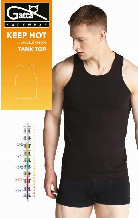 GATTA Tank Top Men Keep Hot k.:Black r.:L Koszulka męska na ramiączkach. Wykonana z przędzy MIYABI – to innowacyjna przędza typu micro-acrylic, połączenie włókna akrylowego z wiskozą. Podkoszulek keep hot dzięki zastosowaniu najwyższej jakości materiału skutecznie chroni przed zimnem, odprowadza …