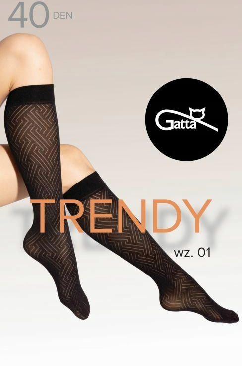 GATTA TRENDY KNEE SOCKS wz.01 Podkolanówki 40 DEN UNI / Nero Podkolanówki damskie ozdobione geometrycznym wzorem. Pół-kryjące, wykonane z najwyższej jakości przędzy typu Lycra Satin Sheers, dzięki czemu są delikatne, a jednocześnie wytrzymałe i elastyczne. Wykończone komfortowym ściągaczem, …