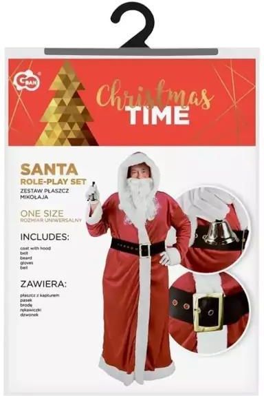 Na zbliżające się święta Bożego Narodzenia wejdz w buty Świętego Mikołaja. Mamy dla Ciebie zestaw składający się welurowego ,czerwonego płaszcza z kapturem. Całość uzupełniają niezbędne dodatki takie jak pasek, broda, rękawiczki oraz dzwonek. Wszystkie te elementy sprawią, że Twoje przebranie …