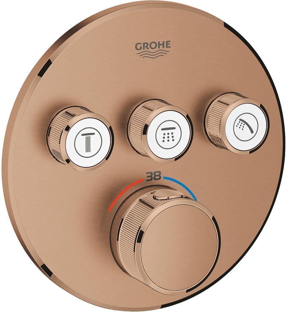 Grohe GROHE Grohtherm SmartControl - podtynkowa bateria termostatyczna do obsługi trzech wyjść wody brushed warm sunset Zalety technologii GROHE w GROHE Grohtherm SmartControl - podtynkowa bateria termostatyczna do obsługi trzech wyjść wody QuickFix niezwykle łatwy i szybki system montażu GROHE …