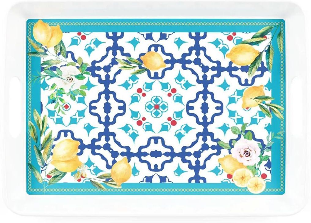 Prostokątna taca „Flower&Lemon” z uchwytami przywołuje zapachy i kolory wiosennych kwiatów i cytryny, jasny, świeży dodatek do każdego stołu. Idealna na imprezę na świeżym powietrzu, nieformalny brunch lub specjalną okazję. Wysoka odporność na uderzenia i szok termiczny Odporny na zarysowania Wszechstronne zastosowanie: idealne zarówno na formalne lunche, jak i na bardziej swobodną rozrywkę w domu lub na świeżym powietrzu Wygoda: lekkie produkty, łatwe w obsłudze i użyciu Można myć w zmywarce Nie zawiera BPA Wymiary: 47,7 x 34 cm Wysokość: 5,3 cm