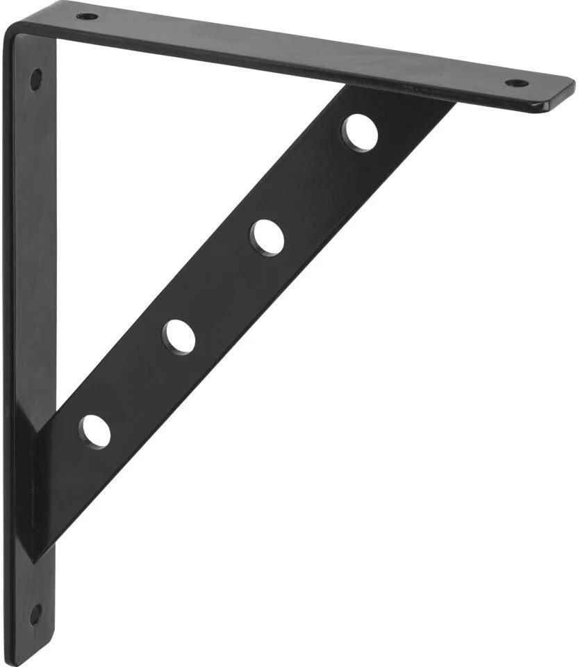 Czarny wspornik ze stali.Ten czarny wspornik może na ścianie stać się estetycznym elementem wyposażenia wnętrza! Wspornik półki marki Hard Head wykonano ze stali lakierowanej proszkowo.