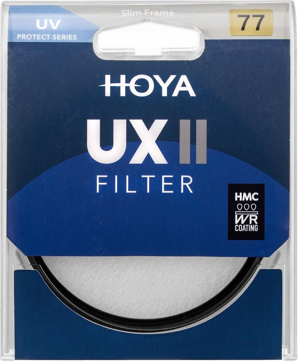 UX II UV     Filtr UV UX II z powłoką hydrofobową to unowocześniona wersja serii HMC UV, który wraz z filtrem UX II CIR-PL został włączony do nowej serii Hoya UX II. Filtr UV UX II to absolutna nowość na rynku fotograficznym, który sprawdzi się idealnie dla początkujących oraz zaawansowanych fotografów. Skrót „UX” pochodzi od słów „User experience”, a więc "Doświadczenia użytkownika". Producent nazywając tę ​​serię UX, korzystał z doświadczeń fotografów i stworzył filtr spełniający większość oczekiwań użytkowników. Filtry UV są idealnym zabezpieczeniem obiektywu przed czynnikami zewnętrznymi chroniąc go przed brudem, kurzem czy uszkodzeniami. Ich działanie polega również na odcinaniu promieniowania ultrafioletowego, co pozwala uzyskać lepsze nasycenie kolorów oraz poprawić kontrast zdjęć zwłaszcza przy słonecznej pogodzie.     GŁÓWNE CECHY: Powłoka antyrefleksyjna zapobiega niepożądanym odbiciom i zwiększa przepuszczalność światła, Powłoka hybrofobowa odpycha krople wody i ułatwia czyszczenie powierzchni filtra z brudu oraz odcisków palców, Cienka ramka filtra zapewnia brak winietowania nawet w przypadku szerokokątnych obiektywów.