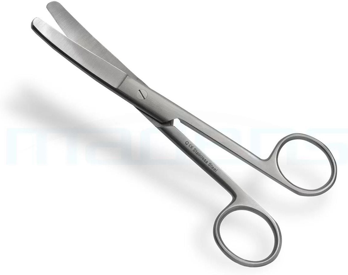 Nożyczki chirurgiczne zagięte, z obiema końcówkami tępymi. Posiadają wygięte ostrza i wygodny uchwyt, co zapewnia swobodę ruchów. Wykonane z odpornej na korozję stali nierdzewnej. Można nimi bezpiecznie preparować w głąb tkanek.