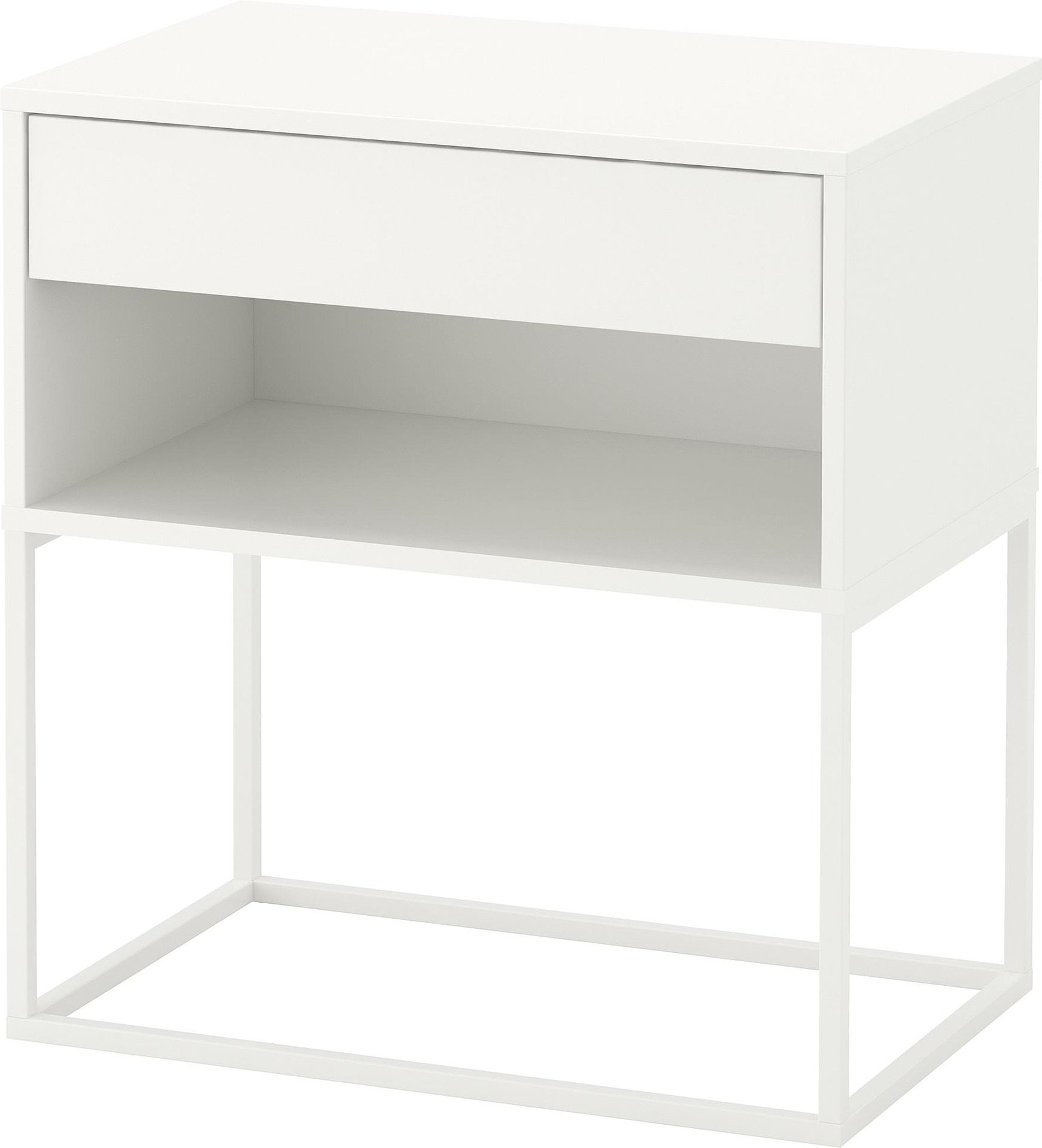 Dzięki zintegrowanej cichego zamykania szuflady domykają się cicho i łagodnie. IKEA VIKHAMMER Stolik nocny, biały Pokój dzienny Stoliki kawowe, ławy i konsole Dostawiane stoliki