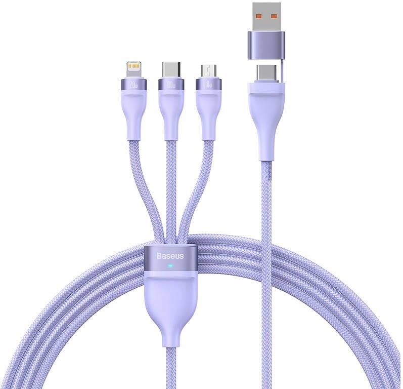 Kabel Usb 3W1 Baseus Flash Series 2, Usb-C + Micro Lightning, 100W, 1.5M (Fioletowy) (242853) Poznań