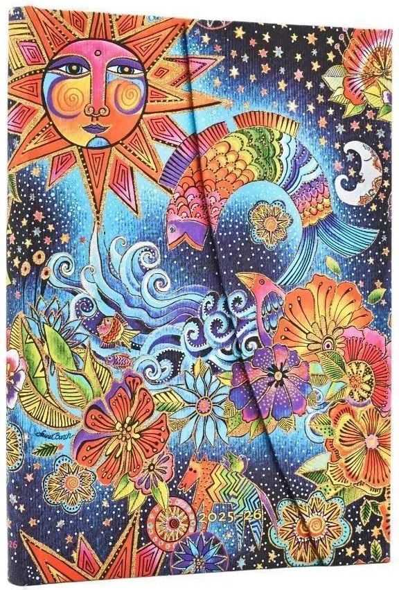 Kalendarz książkowy midi 25/26 18M Celestial Magic paperblanks ✅ ✔️ Kalendarz 18-miesięczny (lipiec 2025-grudzień 2026) ekskluzywnej marki Paperblanks, Okładka z akwarelą wykonaną przez japońskiego artystę, wzorowaną na motywach obrazów Laurel Burch, Format Midi typu Horizontal - cały tydzień …