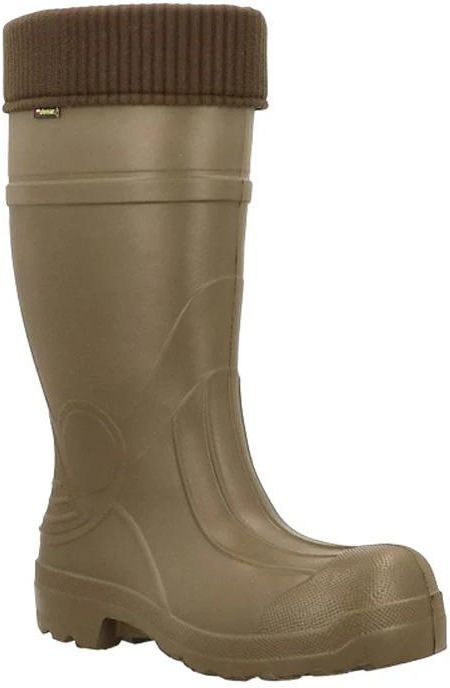 Całoroczne kalosze, w kolorze Khaki, wykonane z wytrzymałego materiału EVA, który charakteryzuje się lekkością i pełną wodoodpornością. Sprawdzą się przy wędkowaniu, pracach w ogrodzie, działalności rolniczej oraz na placach budowy. Wkład ocieplający jest łatwy do wymiany oraz tworzy skuteczną izolację termiczną.