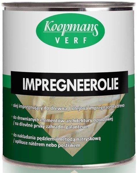 Impregneerolie to impregnujący i koloryzujący olej do drewna na bazie naturalnego oleju lnianego. Impregnuje i zabezpiecza drewno, reguluje jego wilgotność, ułatwia jego swobodne oddychanie oraz pozwala uzyskać gładką, jedwabistą i miłą w dotyku powierzchnię. Wersje koloryzujące produktu oraz wersja w kolorze naturalnym z filtrem UV chronią drewno przed warunkami zewnętrznymi (słońce, wilgoć, opady atmosferyczne itp.). W renowacji drewno nie wymaga wcześniejszego szlifowania ani usuwania starej warstwy. Dzięki zawartości naturalnego oleju lnianego produkt doskonale podkreśla naturalną strukturę drewna. Idealny do deski modrzewiowej, architektury ogrodowej, mebli ogrodowych czy drewnianych elementów fasadowych itp. Wystarczy jedna warstwa. 1 litr wystarcza na ok 10 - 15 m2/1l* * wydajność silnie uzależniona od gatunku i rodzaju drewna oraz sposobu aplikacji Dostępny w pojemnościach: 2,5 l; 5 l; 20 l ZALETY wystarczy tylko jedna warstwa wieloletnia ochrona głęboka impregnacja łatwa aplikacja przyjazny dla środowiska odporny na działanie czynników atmosferycznych podkreśla naturalne piękno drewna zapewnia wysoką ochronę przed biodegradacją w systemie z impregnatem technicznym NAKŁADANIE RĘCZNE - powierzchnia gotowa w 1 dzień, 1 powłoka. 1. Przed użyciem produkt należy dobrze wymieszać i sprawdzić kolor. Zaleca się wypróbowanie produktu na niewielkiej powierzchni – kolor końcowy będzie zależał m.in. od rodzaju i gatunku drewna, jego stanu jak i od ilości naniesionych warstw. 2. Pierwszą warstwę nakładamy na surowe, wyszlifowane drewno. Bezwzględnie usuwamy nadmiar produktu po 20 minutach od zakończenia aplikacji!!! 3. Czas schnięcia ok. 24 godzin w normalnych warunkach (23°C / 50% wilgotności względnej). Niższe temperatury i/lub wyższa wilgotność mogą wydłużyć czas schnięcia. Zapewnić dobrą wentylację. 4. Drugą warstwę nakładamy jedynie w razie konieczności. 5. Do aplikacji używamy płaskiego, szerokiego pędzla. 6. Pozostawiamy do całkowitego wyschnięcia na 24 godziny. 7. Narzędzia czyścimy przy użyciu benzyny ekstrakcyjnej. Pielęgnacja powierzchni zabezpieczonych produktem – myć wodą, ewentualnie z dodatkiem delikatnego detergentu przeznaczonego do mycia powierzchni zabezpieczonej olejem do drewna (zaleca się również zastosowanie produktu HOUTCLEANER). Nie szorować, nie myć szczotką. Tkaniny oraz papier zabrudzone zawartością tego produktu przechowywać wyłącznie w dobrze zamkniętym pojemniku, zalać wodą lub pozostawić na zewnątrz do wysuszenia ze względu na niebezpieczeństwo zapalenia. Drewno użytkowane na zewnątrz lub wewnątrz, narażone na biokorozję (grzyby powodujące rozkład drewna oraz owady żerujące w drewnie), należy wcześniej bezwzględnie zabezpieczyć gruntującym Impregnatem Technicznym linii Koopmans. Dolne powierzchnie drewna w przekroju czołowym powinny być podfrezowane by uzyskać krawędź ociekową. Powierzchnia drewna przeznaczone do pokrycia produktem powinna być czysta, odtłuszczona, zdrowa oraz sucha. Maksymalna wilgotność drewna nie może przekraczać 18%. Poszarzałe drewno należy wyczyścić odpowiednim preparatem czyszczącym (zaleca się zastosowanie produktu HOUTCLEANER), który usunie również algi, mech i inne zabrudzenia. Zaleca się przeprowadzenie przeglądu elementów impregnowanych raz w roku (na wiosnę) i dokonanie w razie potrzeby ich renowacji. W przypadku deski tarasowej przeglądu i ewentualnej renowacji należy dokonać dwa razy w roku (na wiosnę oraz na jesień). W przypadku renowacji, powierzchnie pokryte wcześniej produktem można po przeszlifowaniu i oczyszczeniu przywrócić do optymalnego stanu nakładając jedną jego warstwę.