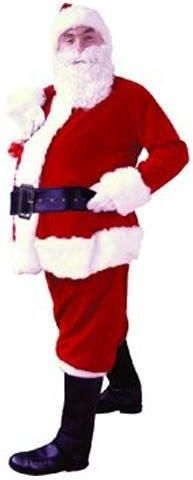 Strój Świętego Mikołaja Strój Mikołaja dla mężczyzny. Na Mikołajki i Boże Narodzenie. W komplecie: czapka, bluza, spodnie, rękawiczki, pas, broda, nakładki na buty. Rozmiar: uniwersalny.
