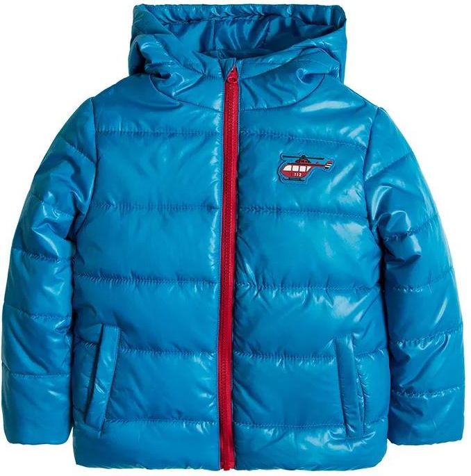 zimowa kurtka dla chłopca wodoodporny materiał zewnętrzny (WP1000) - 100% poliester wypełnienie - 100% poliester podszewka - 100% poliester kolor niebieski doszyty kaptur zapięcie na suwak zabezpieczenie zamka przy szyi w rękawach wszyte ściągacze kieszenie gumowa naszywka z helikopterem pielęgnacja: prać z podobnymi kolorami w temperaturze do 40° C. Prać i prasować po lewej stronie.