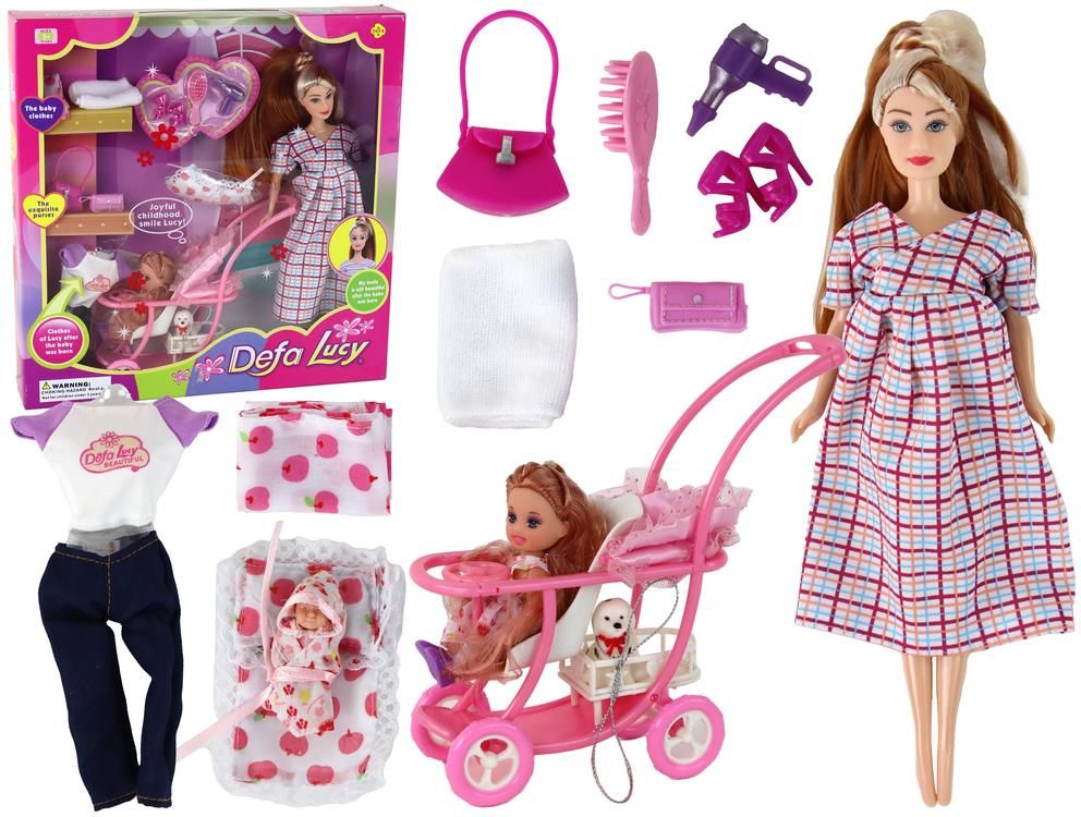 Leantoys Zestaw Lalka Lucy W Ciąży Niemowlę Wózek Długie Brązowe Włosy Poznań