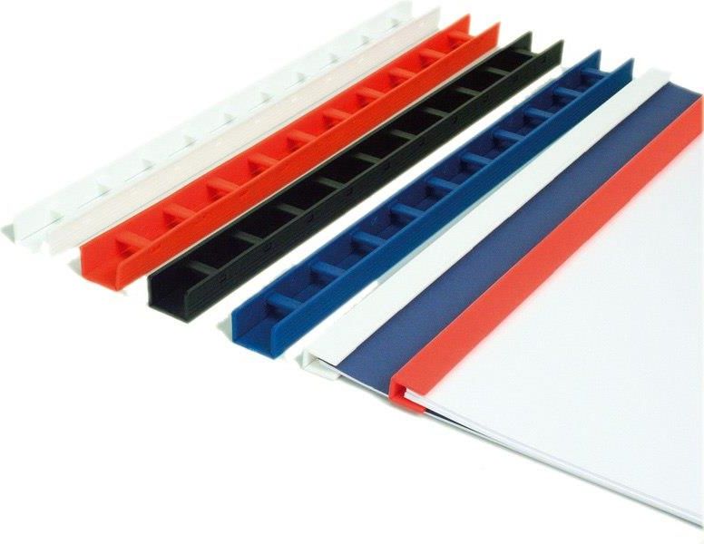 Listwy Zatrzaskowe GREENBINDERY do oprawy dokumentów, in. listwy zamykane, grzbiety zatrzaskowe – Grzbiet do łączenia kartek przedziurkowanych dowolnym modelem bindownicy do grzbietów plastikowych. – Złożenie listwy odbywa się ręcznie tworząc estetyczny i trwały grzbiet. – W każdej chwili można otworzyć listwę, aby dodać lub wyjąć kartki. – Szerokość grzbietu: 5mm, 10mm, 15mm, 20mm, 25mm – Dostępne kolory: biały, czerwony, niebieski, czarny. – listwy zatrzaskowe do bindowania pakowane są po 50 szt jednego koloru i rozmiaru