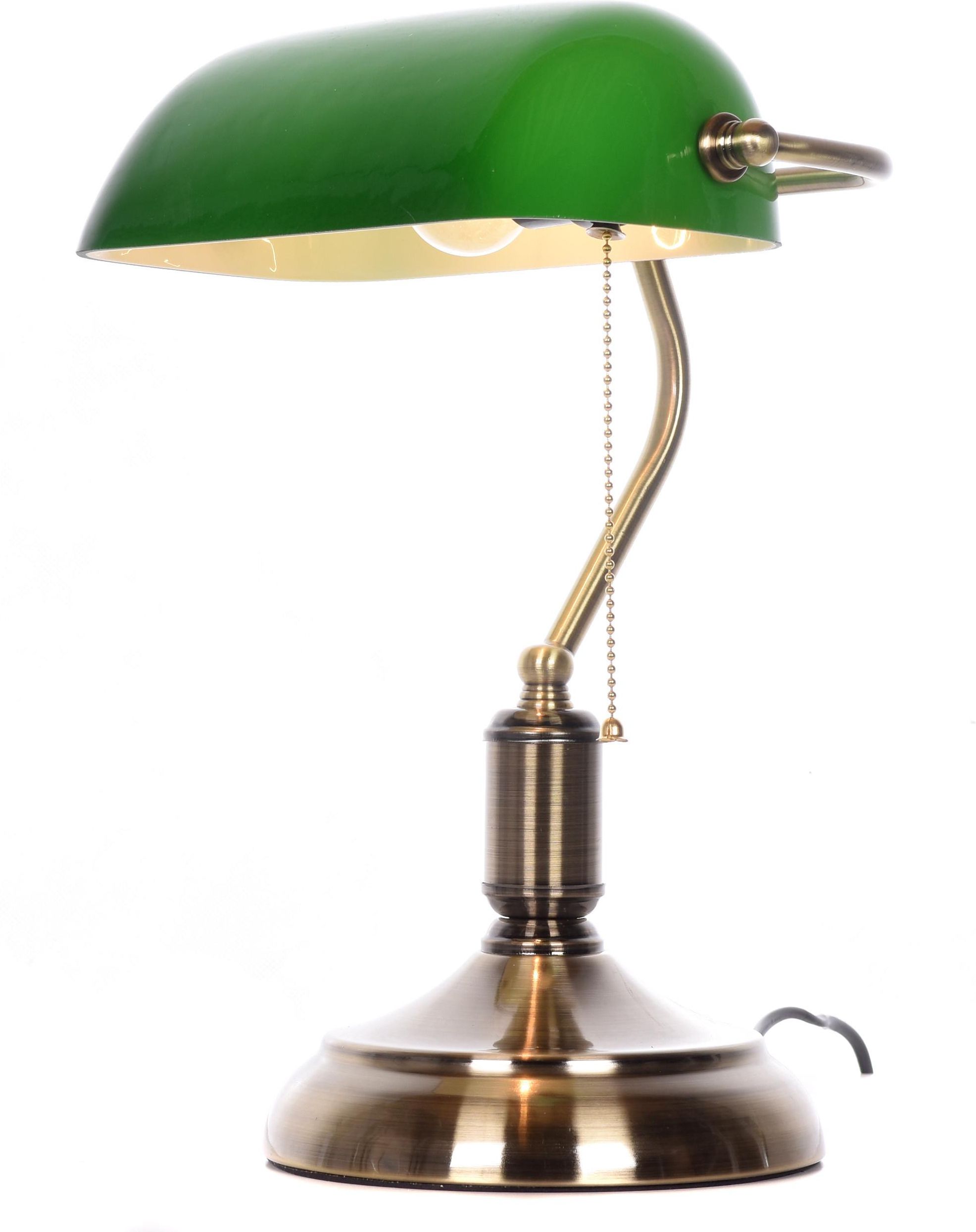 LAMPA BANKIERSKA BIURKOWA STOŁOWA KLASYCZNA ZIELONA BANKER Kod produktu: LDT 305 (GR) Wyjątkowa lampa bankierska, która wprowadzi do wnętrza niezrównany styl i klasykę. Z charakterystycznym zielonym kloszem i mosiężną podstawą, ta lampa doskonale łączy szykowny design z funkcjonalnością. Łańcuszek włącznika nadaje jej unikalnego charakteru, przyciągając uwagę i dodając elegancji każdemu pomieszczeniu. Idealnie sprawdzi się w przestrzeni biurowej, w gabinecie lub bibliotece. Jeśli cenisz sobie ponadczasowy wygląd i wysoką jakość wykonania, ta lampa będzie doskonałym wyborem. Najważniejsze cechy produktu - elegancja i szlachetny design Klasyka elegancji – Ta lampa stanie się stylowym, szlachetnym elementem każdego biura, gabinetu, pokoju dziennego czy hotelowego. Dzięki swojej eleganckiej formie, wprowadzi atmosferę luksusu i profesjonalizmu, podnosząc prestiż każdego wnętrza. Inspiracja starymi wzorami – Zaprojektowana na podstawie klasycznych modeli z początków XX wieku, lampa wnosi do Twojego wnętrza wytworną i luksusową atmosferę. To idealny wybór, jeśli chcesz nadać przestrzeni ponadczasowy, historyczny charakter. Kontrastujące materiały – Zielony klosz, który efektownie kontrastuje z metalową mosiężną podstawą, sprawia, że lampa ma wyjątkowy, ponadczasowy wygląd. To doskonała kombinacja, która dodaje elegancji i stwarza subtelną harmonię w każdym wnętrzu. Najważniejsze cechy produktu - wyjątkowa jakość produktu Wysoka jakość wykonania – Lampa została stworzona z najwyższej jakości materiałów, takich jak metal i podwójna tafla szkła. Dbałość o najdrobniejsze detale zapewnia jej trwałość, estetyczny wygląd i długowieczność, dzięki czemu będzie służyć przez wiele lat. Autentyczny i funkcjonalny włącznik na łańcuszku – Dzięki wygodnemu, metalowemu łańcuszkowi włączającemu, obsługa lampy jest prosta i naturalna. Taki detale podkreślają autentyczność i klasyczny charakter produktu. Uniwersalny gwint E27 – Z możliwością dobrania odpowiedniej żarówki do wnętrza, lampa staje się wyjątkowo funkcjonalna i dopasowana do Twoich indywidualnych potrzeb. Możesz wybrać żarówkę o odpowiedniej mocy i barwie, idealnie pasującą do atmosfery, jaką chcesz stworzyć. Kolor i materiał Kolor lampy: zielony, mosiądz Kolor klosza/abażuru: zielony Materiał lampy: metal Materiał klosza/abażuru: szkło Rozmiar Szerokość lampy: 28 cm Wysokość lampy: 38 cm Zakres regulacji (wysokość lampy wliczona): regulowany kąt nachylenia Dane techniczne Rodzaj gwintu: E27 Napięcie(V): 220-240 Moc oprawki(W): 40 Ilość punktów światła: 1 Typ żarówki: wszystkie typy żarówek Zestaw nie zawiera żarówek - pozostawiamy wolną rękę w ich doborze, wedle preferencji. Najważniejsze cechy produktu - Praktyczność i uniwersalność Regulowany kąt nachylenia klosza – Dzięki tej funkcji, lampa pozwala skierować światło tam, gdzie jest najbardziej potrzebne. Wygodna regulacja zapewnia optymalne oświetlenie w różnych warunkach i zastosowaniach. Właściwy rozmiar – Z średnicą 28 cm i wysokością 38 cm, lampa jest odpowiednia do różnych przestrzeni, nie zajmując zbyt dużo miejsca, ale wciąż stanowiąc efektowny element dekoracyjny. Idealna do biura, gabinetu czy sypialni. SERIA BANKER CLASSIC Lampa bankierska BANKER CLASSIC dostępna w naszej ofercie to klasyczny model, który powinien znaleźć się na każdym biurku w szanujących się gabinetach. Nasza zielona lampa stołowa to elegancja, prostota i funkcjonalność połączona w jednym. Światło włącza się przy pomocy łańcuszka znajdującego się z boku lampy. Produkt wykonany jest z eleganckiego mosiądzu nadającego mu piękny wygląd. Lampa biurkowaBANKER CLASSIC to wykonane w wyjątkowo klasycznym stylu oświetlenie, które z pewnością odnajdzie się na blacie czy biurku w gabinecie, domowym biurze, ale także we wszelkiego rodzaju instytucjach. Jej elegancki wygląd, zielona oprawa oraz tradycyjny kształt klosza to typowe cechy lampy bankierskiej znanej i cenionej od lat. Oprócz specyficznego wyglądu jej zaletą jest szeroki kąt padania światła, który poprawia jakość nauki czy pracy. O kolekcji BANKER CLASSIC warto pamiętać w momencie urządzania biura i gabinetu, choć lampy bankierskie, z racji swojej nazwy, często wykorzystywane są w lokalach użytkowych, na przykład bankach czy sądach. Lampę biurkową tworzy metalowa konstrukcja o eleganckiej, mosiężnej barwie, na którą składa się solidna, okrągła podstawa z dekoracyjnymi żłobieniami oraz ramię, tworzące wraz z charakterystyczną, metalową półobręczą mocowanie dla podłużnego klosza, którego zielona oprawa nobliwie komponuje się z mosiężną bazą. Swoistą wisienką na torcie lampy bankierskiej jest subtelny łańcuszek o charakterze dekoracyjnym, za pomocą którego obsługa lampy jest prosta i intuicyjna. Jej blask umili czas pracy czy rozrywki, a czytanie książek czy czasopism przy jej świetle stanie się jeszcze większą przyjemnością. Uniwersalność i styl w każdym wnętrzu Lampa bankierska to połączenie elegancji z funkcjonalnością, które doskonale komponuje się w różnych przestrzeniach: Biuro – Wprowadza elegancki charakter, stając się centralnym punktem dekoracyjnym, który podkreśli profesjonalizm i styl każdego miejsca pracy. Gabinet – Nadaje przestrzeni elegancki, klasyczny akcent, tworząc atmosferę spokoju i wyrafinowania. Pokój dzienny – Doskonała do stworzenia klimatycznego oświetlenia, które wprowadzi ciepło i wygodę do codziennych chwil spędzanych w salonie. Biblioteka – Z jej subtelnym, ale efektownym światłem, lampa stanowi doskonałe oświetlenie do czytania i relaksu, dodając przestrzeni klasycznego uroku. Pokój hotelowy – Elegancka, ale funkcjonalna, wprowadza luksusowy akcent, który goście zapamiętają na długo. Lampa bankierska to uniwe
