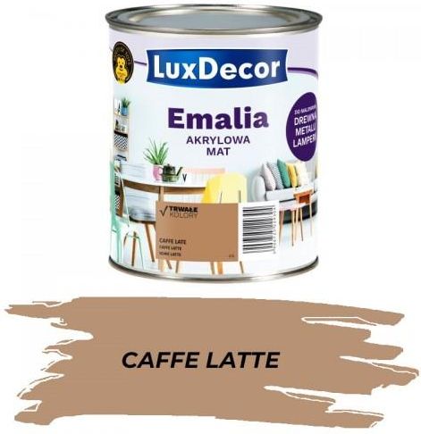 Przedmiotem aukcji sklepu "KLEKS NA ŚCIANIE" jest: LUXDECOR EMALIA AKRYLOWA CAFFE LATTE MAT 0,75L Emalia akrylowa jest uniwersalną wodorozcieńczalną emalią akrylową do malowania drewna, materiałów drewnopodobnych, gipsu i betonu. Wydajność: do 14 m²/l wydajność zależy od rodzaju i wykończenia …