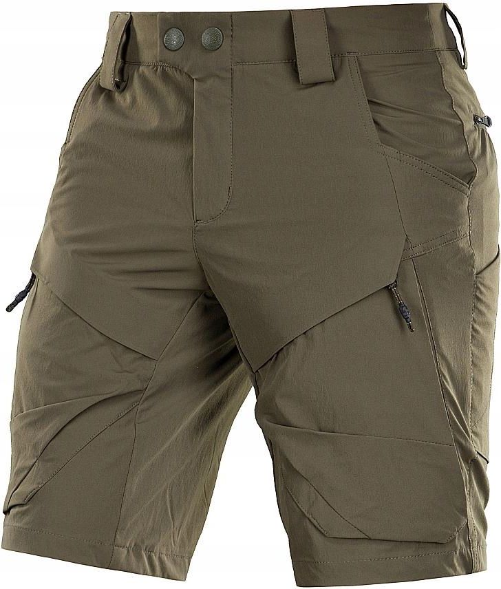 M-Tac Spodenki Rubicon Flex Spodenki M-Tac Rubicon Flex Black to uzupełnienie naszej letniej kolekcji. Cechą charakterystyczną tego modelu jest nietypowa konstrukcja kieszeni cargo, które są ścięte do wewnątrz i znajdują się bliżej wewnętrznej powierzchni uda. Rubicon wykonany jest z najnowocześniejszej tkaniny „4-Way Stretch” dzięki czemu spodenki rozciągają się we wszystkich 4 kierunkach i zapewniają komfort podczas aktywnego ruchu. Ponadto materiał ten jest wyjątkowo odporny na blaknięcie na słońcu i posiada wodoodporną impregnację, co czyni spodenki doskonałym wyborem na lato. Tkanina 4-Way Stretch zapewnia doskonałe dopasowanie w pełnym zakresie ruchu, rozciąga się we wszystkich kierunkach i zapewnia pełną swobodę podczas noszenia. Tkanina posiada właściwości wodoodporne i oddychające, które zapewnią maksymalny komfort użytkowania. Osprzęt i zamki błyskawiczne: YKK Materiał: "4-Way Stretch" (85% nylon i 15% spandex)