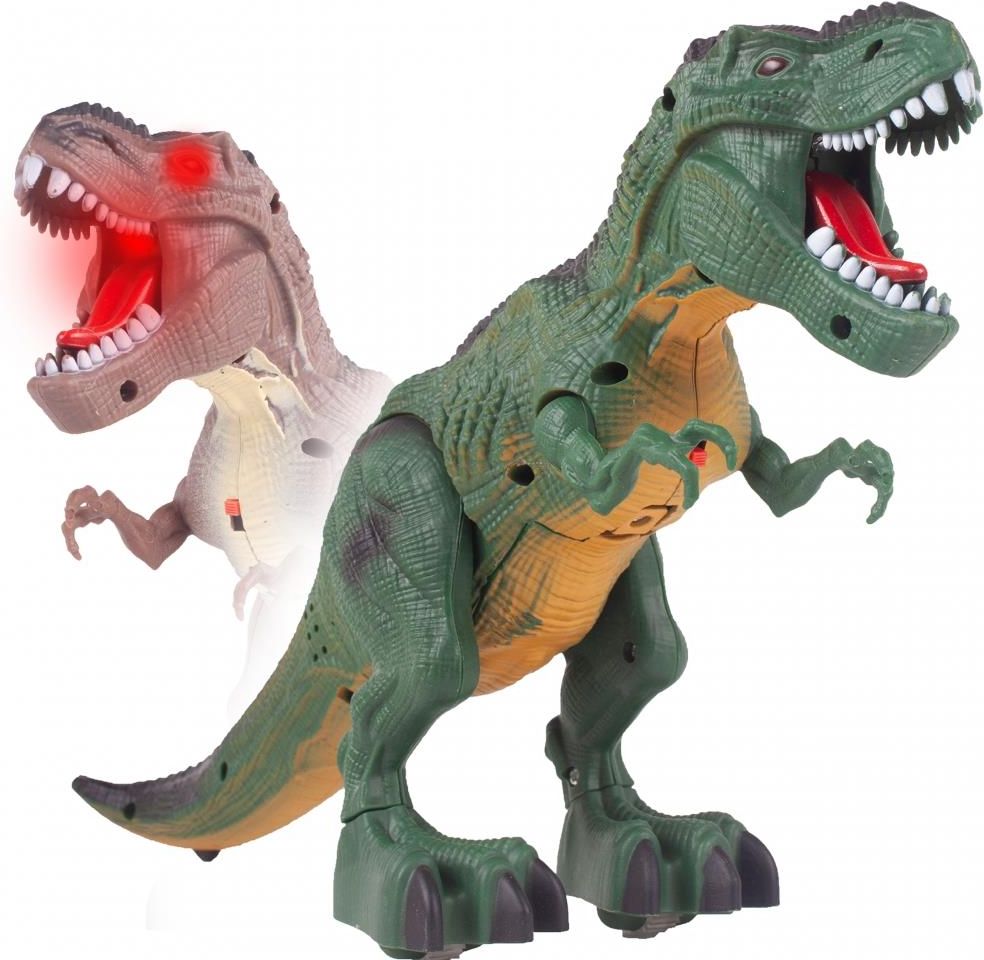 Dinozaur światło, dźwięk Interaktywny dinozaur jest świetnym prezentem dla fanów tych stworzeń. Efekty świetlne oraz dźwiękowe zapewnią wiele godzin wspaniałej zabawy! Po uruchomieniu duży dinozaur zaczyna stawiać kroki i ryczeć. Efekty świetlne, takie jak błyskające oczy tylko potęgują te niecodzienne wrażenia. Realistyczny wygląd! Nasz dinozaur wygląda jak prawdziwe, prehistoryczne zwierze, dzięki świetnie odwzorowanej budowie, sposobu poruszania się oraz wydawanym przez niego dźwiękom Chodzący dinozaur może być nie tylko rewelacyjną zabawką - sprawdzi się również w roli pomocy naukowej. Dzięki takiemu przedmiotowi wytłumaczenie dziecku faktów związanych z prehistorią i mitycznymi stworzeniami będzie o wiele łatwiejsze, ponadto rozwinie wiedzę i wyobraźnię malucha, zachęcając go do samodzielnego zdobywania informacji na te tematy Dinozaur ma wiele efektów specjalnych! na zmianę ryczy i wydaje dźwięki ciężkich kroków porusza się do przodku dzięki małym kółeczkom przymocowanym na łap oraz ogona posiada czerwone diody w oczach oraz paszczy, co sprawia, że zabawka świetnie wygląda w ciemności ma ruchome łapy, dzięki czemu wygląda jeszcze bardziej realistycznie. Do wyboru kolor: zielony brązowy PARAMETRY: Wymiary opakowania: 22,5 x 33 x 9,5 cm Wymiary dinozaura: wysokość: 18 cm, długość.: 29 cm, szerokość: 8,5 cm Zasilanie: 2xAA (brak w zestawie) Wiek: 3+ Materiał: plastik