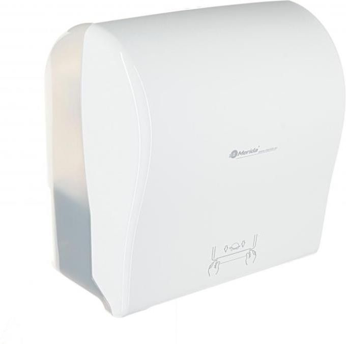 MERIDA PODAJNIK NA RĘCZNIKI PAPIEROWE SOLID CUT MAXI, WERSJA BIAŁY POŁYSK symbol produktu: CJB304 OPIS PRODUKTU niewielkie rozmiary - podajnik mieści rolkę MAXI o długości 250m (!) i średnicy do 19,5 cm urządzenie wykonane jest z wysokiej jakości tworzywa ABS tylna część obudowy wykonany jest z jasnego transparentnego tworzywa, które umożliwia kontrolę ilości ręcznika natomiast przód wykonany jest w białym połysku cicha i delikatna praca mechanizmu nóż tnący wykonany z super twardego i odpornego na tępienie tworzywa sztucznego mechanizm tnący został tak zaprojektowany, aby ucinać jak najkrótsze odcinki papieru, co oznacza rzadszą konieczność wymiany rolki oraz lepsze wykorzystanie ręcznika długość odcinanego listka to 24 cm zamykany na kluczyk (kluczyk w zestawie, symbol: ZX161) przeznaczony do ręczników papierowych w roli AUTOMATIC zestaw zawiera komplet kołków i wkrętów 6 mm typ naścienny, przykręcany Pasujące ręczniki: RAZ301, RAB310, RAE301, RAB309, RAN301, RAB320, RAN302, RAB312, RAB313, RAB301, RAB302 PARAMETRY TECHNICZNE wysokość: 34 cm szerokość: 31 cm głębokość: 20,5 cm