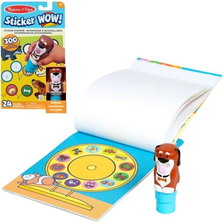 Zestaw Sticker Wow Piesek naklejki i książeczka Melissa & Doug Został stworzony przez cenioną markę Melissa & Doug, specjalizującą się w projektowaniu wysokiej jakości ekologicznych zabawek, które rozwijają zdolności motoryczne i kreatywność u maluchów. Sticker Wow! „Pieski” to kreatywny zestaw naklejek, który wnosi w zabawę całkowicie nowe rozwiązanie - stempelek-piesek (postać kolekcjonerska) służy do przybijania gotowych naklejek z magazynku wewnątrz stempelka. Dziecko używa stemplem, aby przenieść naklejkę na specjalne miejsca w książeczce z zadaniami. Zestaw zawiera 300 naklejek o tematyce piesków, które są już umieszczone wewnątrz stempelka. W skład wchodzi również 24-stronicowa książeczka wypełniona kolorowymi stronami z zadaniami: dopasowywanie, liczenie, wyszukiwanie i inne ćwiczenia, które zachęcają do logicznego myślenia i precyzji. Naklejki są łatwe do odklejenia i używania, stempelek posiada też schowek wewnątrz, co pomaga utrzymać porządek - naklejki są zabezpieczone przed rozsypaniem. To idealna zabawka „na wynos” - lekka i kompaktowa, świetna do torebki lub plecaka. zabawka przeznaczona dla dzieci powyżej 3 roku życia ilość stron: 24 ilość naklejek w zestawie: 300 wersja językowa: angielska wymiary opakowania: 25,5 x 15,5 x 5 cm kod producenta: 6074891 20155249