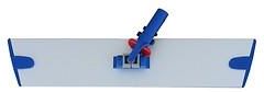 Stelaż z klipsami do mopa rzepowego lub ścierek Niebieski stelaż wykonany jest z wysokiej jakości tworzywa sztucznego. Wzdłuż stelaża przechodzą dwa rzędy taśmy z rzepem. Przeznaczony do mopów z mikrowłókna mocowanego na rzep Velcro. Posiada dodatkowe zaczepy służące do zamocowania mopa lub ścierki. Posiada obrotowy uchwyt z tworzywa do montażu kija, co pozwala czyścić powierzchnię pod dowolnym kątem. długość: 40 cm