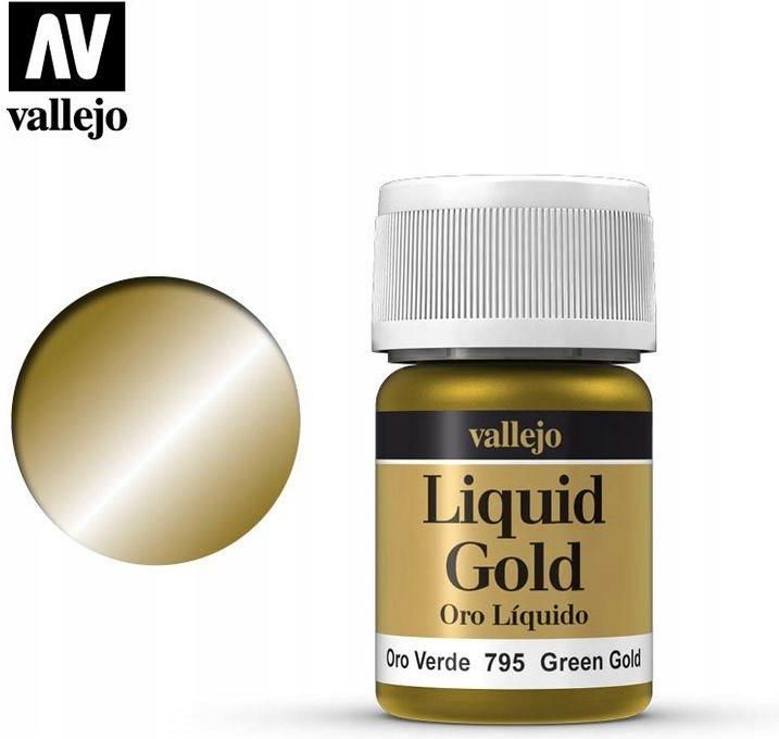 Vallejo 795 Zielone złoto - Green Gold ORO VERDE pojemność 35ml Olśniewające kolory metaliczne wytwarzane z rzeczywistych pigmentów metalicznych w formule opartej na alkoholu, co powoduje metaliczne wykończenie o niezwykłym realizmie i trwałości. Kolory można rozcieńczać alkoholem, mieszać ze sobą, …