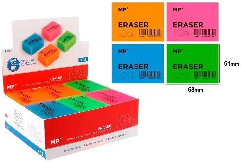Gumka do ścierania 4 kolory 12szt./opakowanie MP Wymiary: 166x141 mm Opakowanie: pudełko