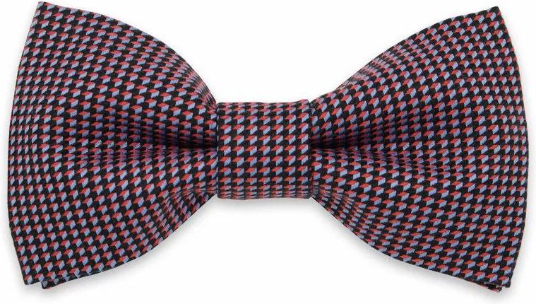 Mucha męska z poszetką Willsoor Zestaw składający się z muchy gotowej i poszetki opakowanej w kartonowe ekologiczne pudełko. Kolorowa mucha jest świetnym i modnym dodatkiem dla mężczyzny z charakterem. Elegancko zapakowany zestaw jest również idealnym pomysłem na prezent. - Tkanina: 100% bawełny - Kolor: czarna w czerwony i niebieski geometryczny wzór - Obwód: regulacja 34cm - 66cm - Wymiary: 11,5cm x 6cm - Opakowanie: kartonowe pudełko Willsoor - Producent: Willsoor