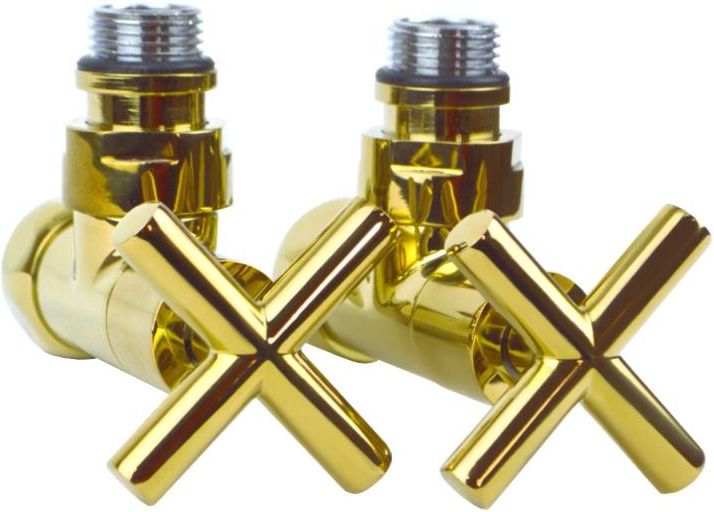 NAVIN RETRO GOLD zestaw zaworów regulacyjnych kątowy do grzejników Retro 25-431430-3012 Zawór kątowy Navin Premium (2szt), służy do podłączenia grzejnika łazienkowego.Wykonany z mosiądzu w kolorze złotym.Maksymalne ciśnienie robocze wynosi 30 BAR.Gwint: wewnętrzny-zewnętrzny.Średnica przyłącza: 1/2" x 1/2".