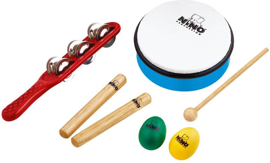 NINO Percussion NINOSET3 Zestaw 6 instrumentów perkusyjnych NINO® Percussion oferuje dwie konfiguracje zestawów, które zostały zaprojektowane specjalnie z myślą o potrzebach mniejszych grup. Na każdym instrumencie można grać samodzielnie lub w grupie. Te dwa zestawy dają nawet pięciorgu dzieciom jednocześnie możliwość nauki podstaw muzyki i rytmiki. Nasz NINOSET3 to instrument muzyczny dla dzieci i młodzieży, który nie jest odpowiedni dla niemowląt poniżej trzeciego roku życia. Specyfikacja techniczna/cechy Zawartość: 1x bęben ręczny ABS, 6" (NINO4R), 1x Jingle Stick (NINO13R), 1x para drewnianych klapsów, małe (NINO502), 1x shaker do jajek żółty (NINO540LY), 1x shaker do jajek zielony (NINO540LGR) Kategoria wiekowa: 3+
