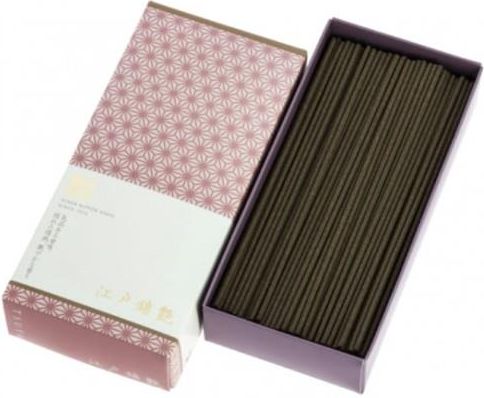 Kadzidełka japońskie EDONISHIKI TSUYA (220 sztuk) (Indeks: 17204114) Kadzidełka japońskie EDONISHIKI TSUYA Edonishiki Tsuya to kadzidło najwyższej jakości. Jego kompozycja nawiązuje do delikatnych i subtelnych zapachów królujących w erze Edo w Japonii (1603–1868 ) słynącej z kultury samurajów i sztuki tworzenia kadzideł. Zapach tego kadzidła jest miękki i słodki, z prześwitującymi głównymi składnikami wanilii i goździków. Edo Nishiki Tsuya ma miękki, otulający i jedwabisty aromat. Wyczujemy w nim zdecydowane nuty pudrowe z waniliowymi niuansami i pikantnym akcentem goździka. Pudełko ozdobione jest tradycyjnym wzorem graficznym tamtych czasów – sahme komon, symbolizującymi skórę rekina. W erze Edo ozdabiano tym wzorem amulety i talizmany. Duże opakowanie gwarantuje najkorzystniejszą cenę jednostkową pojedynczego kadzidełka . Parametry długość kadzidełka: 14 cm czas spalania: ok. 30 minut ilość w opakowaniu: 220 kadzidełek producent: Nippon Kodo Co., Ltd Japan Komponenty Podstawowym składnikiem budującym strukturę kadzidełka jest sproszkowane drzewo Tabu-no-ki (Machilus Thunbergii), do którego dodaje się różne składniki, nadające kadzidełkom wyrafinowany zapach. Niektóre kadzidła (np. seria Naturense) zawierają wyłącznie substancje roślinne. Inne zawierają również olejki eteryczne najwyższej jakości, zgodne z normami IFRA (International Fragrance Association). Kadzidełka Nippon Kodo są najbardziej naturalne na rynku i odpowiadają niezwykle wymagającym, japońskim normom jakości.