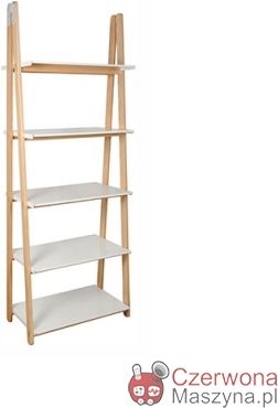 Nowoczesny regał na książki, domowe dekoracje, gadżety i inne przydatne w domu akcesoria, które dobrze jest mieć pod ręką. Wykonany w hołdzie minimalistycznym trendom: bez zbędnych ozdobników, tylko naturalne drewno jasnego jesionu i aluminium lakierowane na biało. Regał ma pięć półeczek, z których każda jest o jeden stopień węższa od tej, która znajduje się pod nią. To gwarancja maksymalnej stabilności regału i wygody sięgania po każdą rzecz, jaką się na nim umieści. Półeczki można w razie potrzeby zdjąć z regału, a jego złożyć jak drabinę – do pozycji płaskiej. Designerski w każdym calu.