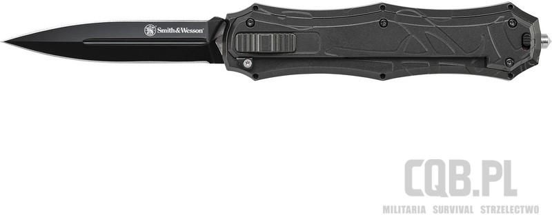 Smith&Wesson Nóż składany Assisted Opening OTF AUS-8 Czarny Smith&Wesson Nóż składany Smith&Wesson Assisted Opening OTF wykonany z wysokiej jakości stali nierdzewnej AUS-8, zapewniającej odporność na korozję. Posiada rękojeść z anodowanego aluminium gwarantującą pewny chwyt nawet w trudnych warunkach, zapewniającą użytkownikowi komfort i bezpieczeństwo podczas użytkowania. Dzięki automatycznemu wysuwaniu ostrza po naciśnięciu przycisku na rękojeści, użytkownik ma szybki i łatwy dostęp do narzędzia w każdej sytuacji. Klips montażowy umożliwia wygodne i bezpieczne przenoszenie noża przy pasku. Cechy: Ostrze wykonane z stali nierdzewnej AUS-8 o profilu Tanto Czarna powłoka na ostrzu Automatyczne wysuwanie ostrza Rękojeść wykonana z anodowanego aluminium Klips montażowy W rękojeści umieszczono zbijak do szyb Dane techniczne Długość całkowita223 mm Długość ostrza91 mm Profil głowniTanto Materiał ostrzaStal nierdzewna AUS-8 Materiał rękojeściAluminium Waga200 g KolorCzarny