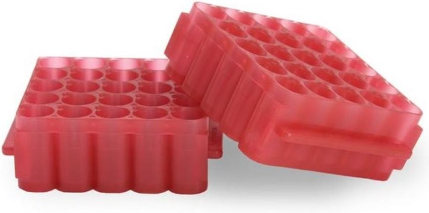 Dwustronny stojak na probówki. Z jednej strony można umieścić 25 probówek 10 mm i 12 mm lub probówki kriogeniczne od 1-5 ml jak również mikroprobówki natomiast druga strona to miejsce na 16 probówek od 0,2-0,5 ml.