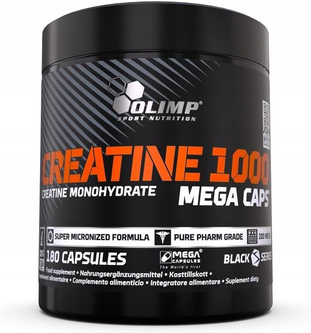 OLIMP CREATINE 1000 MC 180kaps MONOHYDRAT KREATYNA CO WYRÓŻNIA NASZ PRODUKT Zawiera wysokomikronizowany monohydrat kreatyny o doskonałej rozpuszczalności dla maksymalnej biodostępności. Optymalna porcja 3 g kreatyny w jednej porcji dla zwiększenia wydolności fizycznej. Produkt wysokiej jakości, bezpieczny i przebadany przez ekspercki ośrodek badawczo-rozwojowy firmy Olimp Laboratories. Skutecznie wspomaga wysiłek treningowy, poprawiając zdolności wysiłkowe i budując pożądaną sylwetkę. MAKSYMALNA WYDAJNOŚĆ PODCZAS TRENINGU! Olimp Sport Nutrition Creatine 1000 Mega Caps® to wysokiej jakości suplement kreatyny w formie kapsułek. Zawiera wysokomikronizowany (200 MESH) monohydrat kreatyny, który jest znacznie lepiej rozpuszczalny niż tradycyjny monohydrat. Dzięki temu składnikowi aktywniejesz swoje rezerwy energetyczne i zwiększasz wydolność fizyczną podczas intensywnych sesji treningowych. OPTYMALNA DAWKA DLA MAKSYMALNYCH REZULTATÓW! Każda porcja (3 kapsułki) dostarcza aż 3 gramy czystej kreatyny. Taka dawka skutecznie wspomaga Twoje zdolności wysiłkowe, pozwalając osiągać lepsze rezultaty podczas treningu. BEZPIECZNY SKŁAD WYPRODUKOWANY PRZEZ EKSPERTA! Produkt został stworzony przez renomowaną firmę Olimp Laboratories, dysponującą nowoczesnym Ośrodkiem Badawczo-Rozwojowym. Wszystkie składniki zostały poddane rygorystycznym testom na obecność zanieczyszczeń, gwarantując najwyższą jakość i bezpieczeństwo stosowania. KLUCZ DO LEPSZEJ SYLWETKI I WYTRZYMAŁOŚCI! Suplement dedykowany jest osobom aktywnym fizycznie i sportowcom, którzy chcą poprawić zdolności wysiłkowe i zwiększyć wydolność podczas intensywnych treningów. Kreatyna bezpośrednio wpływa na produkcję ATP, głównego źródła energii dla mięśni, co przełoży się na Twoje postępy w dążeniu do wymarzonej sylwetki. SPECYFIKACJA Kod producenta: 5901330095474 Nazwa: Creatine 1000 Mega Caps Rodzaj: monohydrat kreatyny Marka: Olimp Grupa smakowa: naturalny Smak: naturalny Forma: kapsułki Cechy: brak Waga: 232 g Liczba sztuk w opakowaniu: 180 szt. Pojemność: 180 ml Wielkość porcji: 3 g Liczba porcji w opakowaniu: 60 Data ważności: przynajmniej 1 rok od momentu zakupu Smak producenta: natural/naturalny Waga produktu z opakowaniem jednostkowym: 0.5 kg EAN (GTIN): 5901330095474