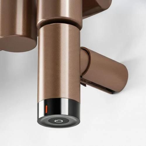 Grzałka Varmare Jarn umożliwia ustawienie dwóch poziomów temperatury grzejnika (45 i 60°C). Elektroniczny czujnik pozwala na ich precyzyjne utrzymanie. Urządzenie pokazuje aktualny tryb pracy za pomocą wielokolorowej diody. Grzałka charakteryzuje się bardzo niskim poborem prądu w trybie czuwania. Grzałka Varmare Jarn posiada funkcję timera, która automatycznie wyłącza grzałkę po 2 godzinach. W przypadku zaniku zasilania grzałka zapamiętuje nastawę (zadane ustawienie), umożliwiając współpracę z zewnętrznymi timerami oraz systemami inteligentnych budynków. Grzałka wyposażona jest w ochronę przeciw zamarzaniu (ANTIFREEZE) oraz podwójne zabezpieczenie przed nadmiernym wzrostem temperatury grzejnika. Sygnalizuje ponadto stany alarmowe. Posiada również aktywną ochronę w przypadku pracy w suchym grzejniku. Grzałka Varmare Jarn idealnie komponuje się z grzejnikami serii Stang marki Oltens. Grzałka występuje w kolorach takich samych jak te grzejniki. wymiary 83x36x52-70 mm zasilanie: 230V/50Hz moc grzałki: 200 W, odpowiednia do wszystkich modeli grzejników łazienkowych Oltens I klasa ochrony urządzenia przyłącze grzejnikowe – ½” stopień ochrony (IP) - IPx5 w zestawie: kabel prosty bez wtyczki z maskownicą kolor: miedź szczotkowana