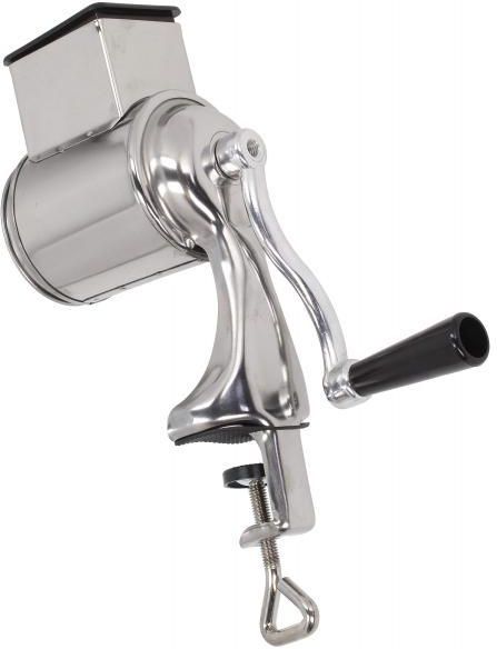 Maszynka do tarcia 6 el. Maszynka do mielenia z zestawem 5 wkładów. Idealna do tarcia orzechów, warzyw i owoców. Maszynka mocowana jest za pomocą śruby do stołu lub blatu. Kod id : 13392 Materiał: stal nierdzewna Długość: 22 cm Szerokość: 8 cm Wysokość: 27 cm Kolor dominujący: srebrny PRAKTYCZNA - Maszynka do tarcia o wymiarach zewnętrznych 22 x 8 x 27 cm. Wysokość maszynki po zamontowaniu do blatu wynosi 20 cm. Wsyp ma wymiary 6 x 5 cm. SOLIDNA - Wykonana z najwyższej jakości stali nierdzewnej oraz wytrzymałego tworzywa. Uchwyt i dodatki wykonane w czarnym kolorze. Odpowiednio użytkowana posłuży długie lata. FUNKCJONALNA - Wyposażona jest w pięć wkładek, które pozwalają na dostosowanie grubości tarcia lub szatkowania w zależności od potrzeb. Sprawdzi się do wygodnego mielenia orzechów, sera, czekolady, owoców lub warzyw. Tarte składniki są idealne jako dodatki do ciast, deserów czy dań. STABILNA - Maszynka mocowana jest za pomocą śruby do stołu lub blatu o maksymalnej grubości 3,5 cm. Wyposażona w nakładki zabezpieczające blat przed uszkodzeniem lub porysowaniem. Mocowanie zapewnia stabilność, dzięki czemu maszynka nie zmienia swojej pozycji w trakcie użytkowania. ŁATWA W UŻYTKOWANIU - Tradycyjnie rozwiązany mechanizm gwarantuje łatwy sposób przygotowywania tartych składników. Posiada wygodną korbkę i nasadkę dociskową, które sprawiają, że przygotowanie domowych tartych orzechów lub bułki tartej jest niezwykle proste i nie wymaga dużej siły. Maszynka do tarcia, wykonana z wytrzymałych materiałów. Przydatna w każdej kuchni. Dzięki niej przygotujemy świeżą bułkę tartą, a także tarte dodatki do deserów czy dań. Maszynka do tarcia to doskonały pomysł na prezent. Produkt bardzo łatwy w montażu, czyszczeniu oraz konserwacji. W celu odpowiedniej konserwacji nie zaleca się mycia w zmywarce do naczyń. Oryginalny produkt czeskiej marki Orion. Wyprodukowano zgodnie z europejskimi standardami.