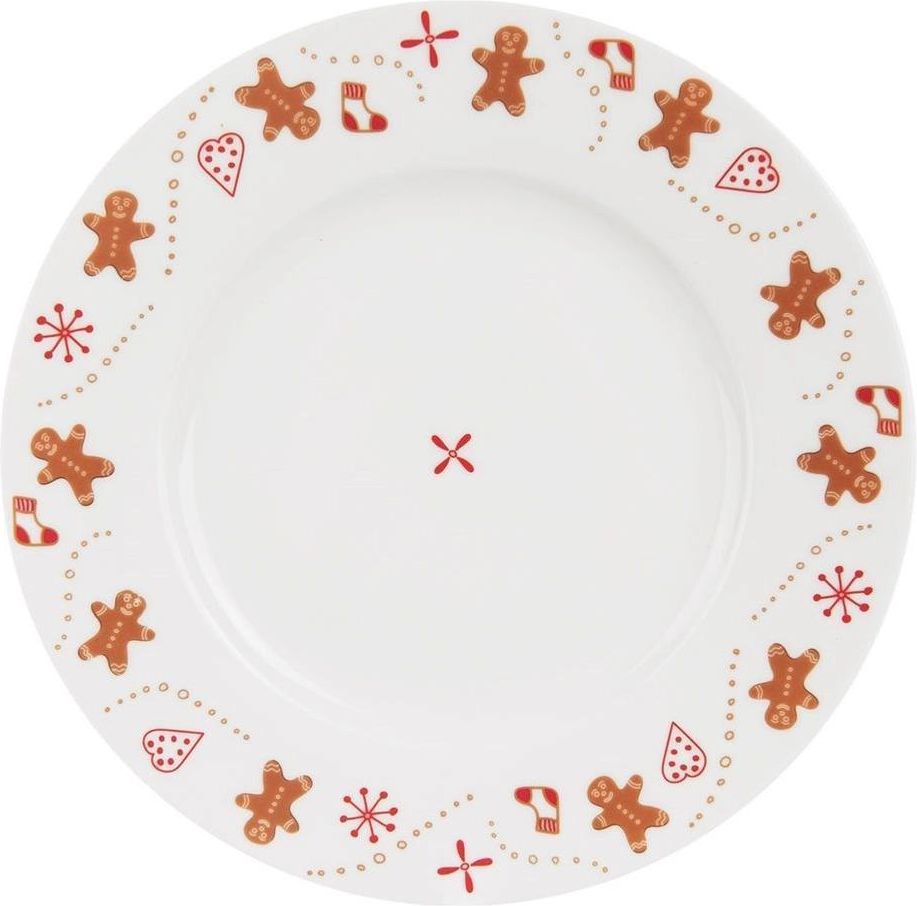 Talerz deserowy porcelanowy 20 cm Orion PRZYDATNY - Płytki talerz deserowy z dekorem świątecznym, niezbędny w każdym domu. Talerz ma średnicę 20 cm oraz wysokość 2 cm. PORCELANOWY - Wykonany z wysokiej jakości porcelany w białym kolorze. Posiada uroczy, kolorowy dekor z motywem piernika. …